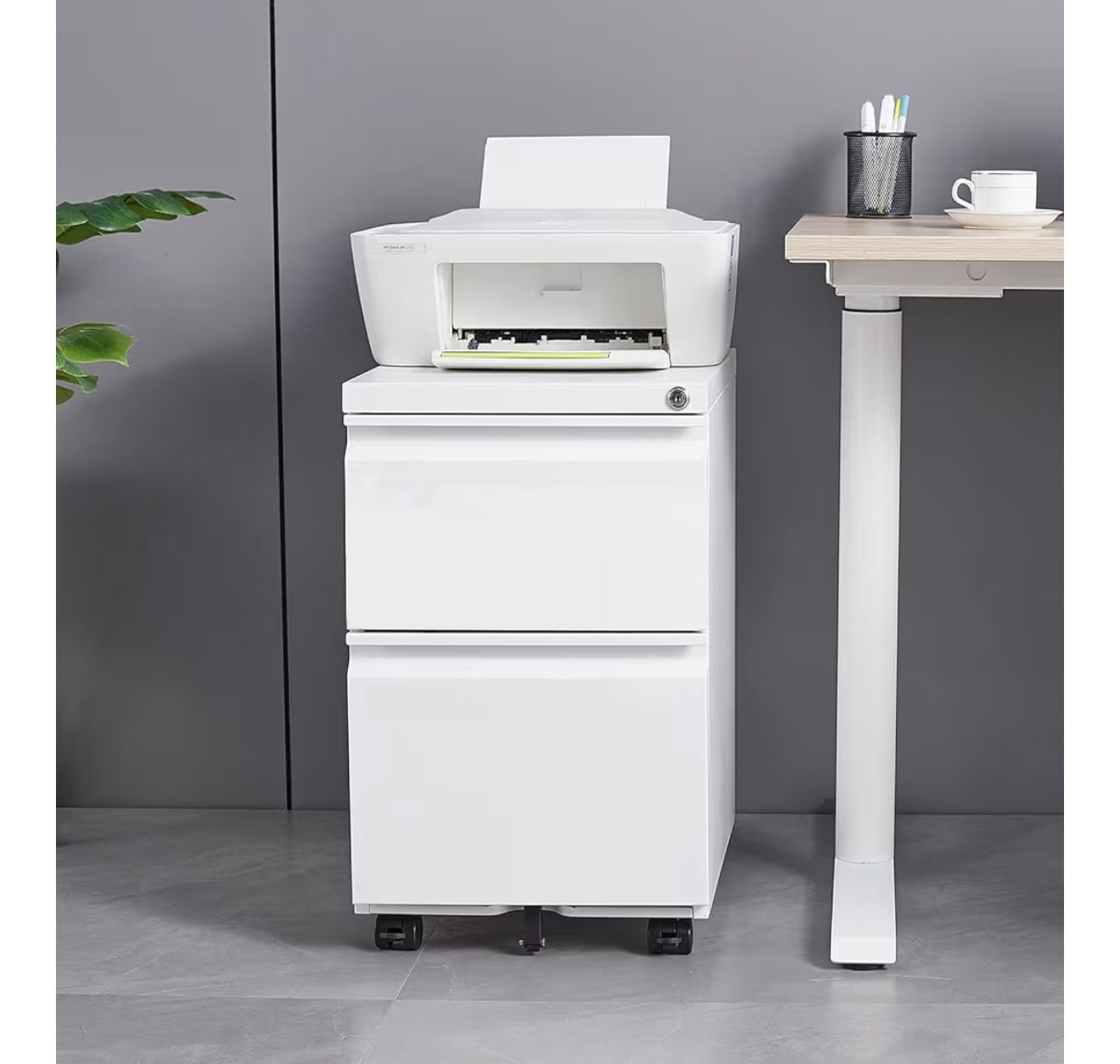 2 Drawer File Cabinet with Lock and Wheels,White Rolling File Cabinets,Locking Mobile Metal Filing Cabinet for Home Office,Under Desk,Fit A4/Letter/Le