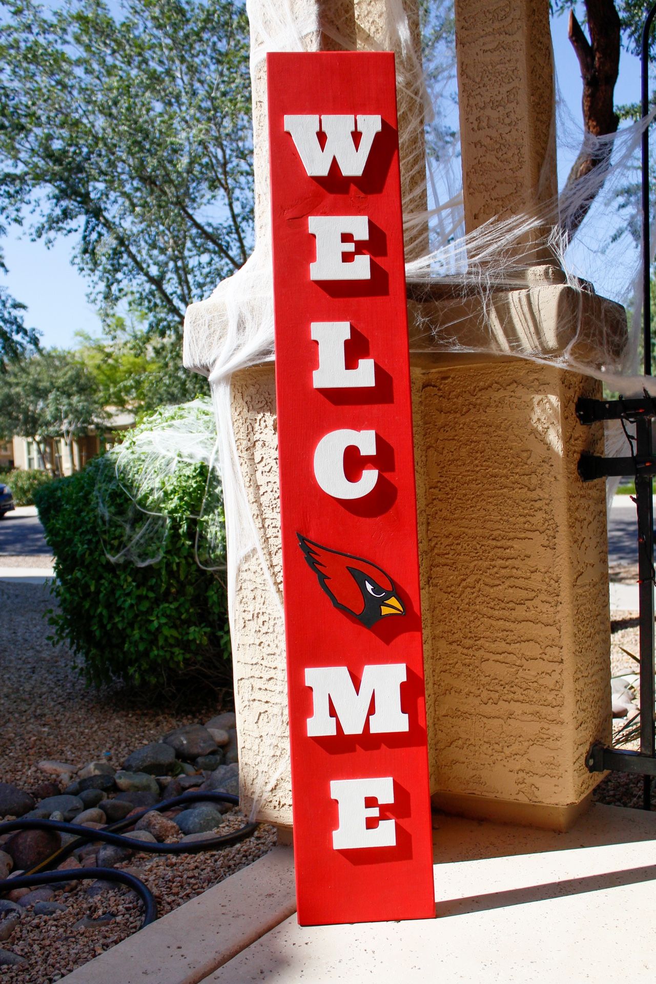 Support your team with a welcome sign that goes great on your front porch or patio! Signs are made of wood and 3D, letters all cut out separately and hand painted, 5 ft tall, but any size can be made. Your favorite team can be made by request