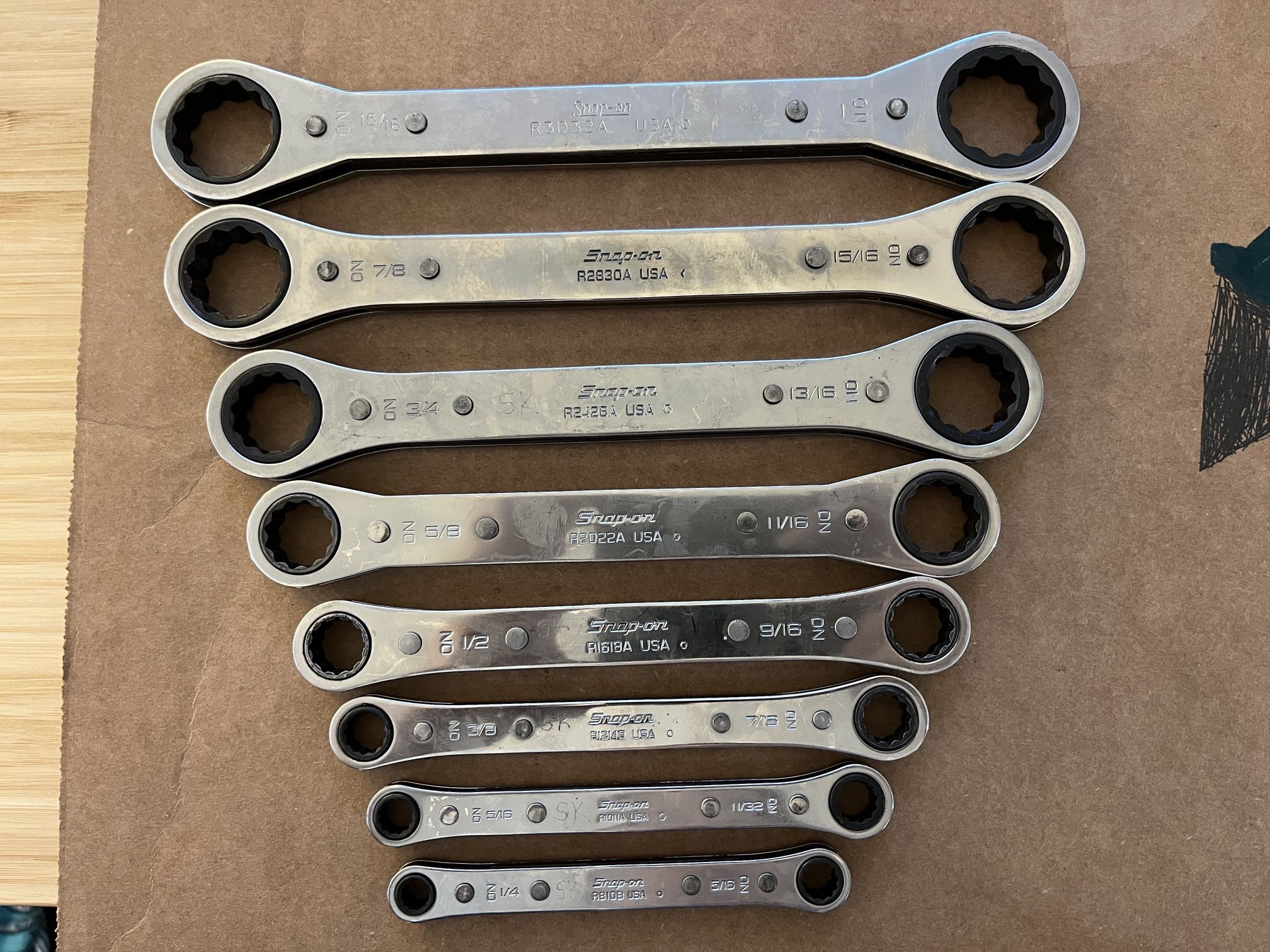 1/4” - 1” R3840A - 1-3/16 & 1-1/4 R3436A - 1-1/16 & 1-t1/8 10pc set most of the wrenches are brand new never used Located in signal hill Pickup and cash only