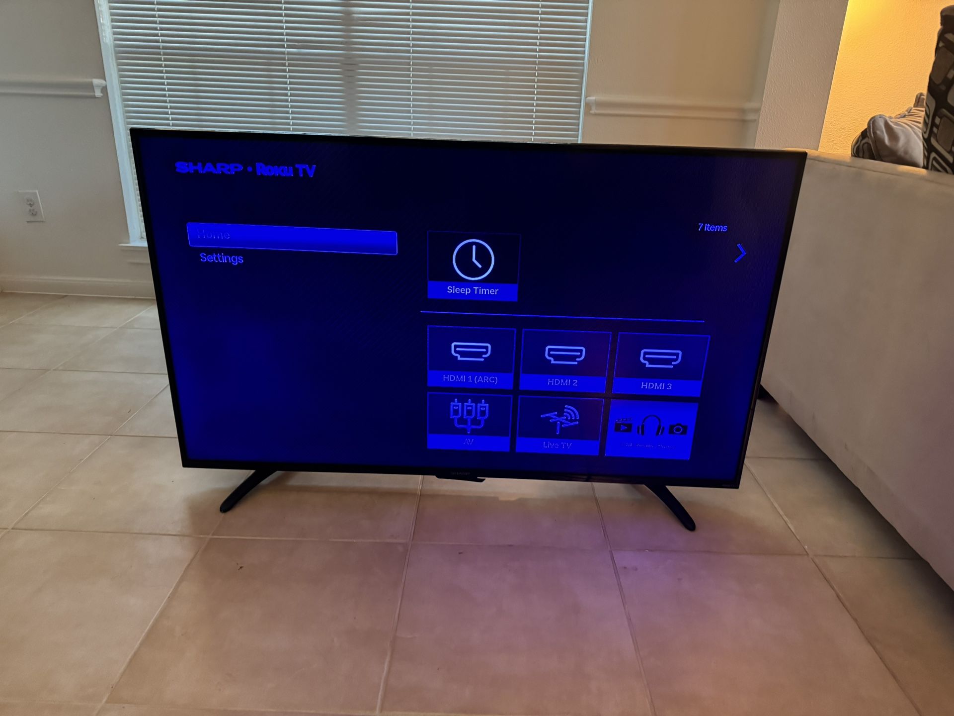 Roku tv 55 inches Sharp brand. Tv does have a blue tint to it that might need the back lights replaced. That is the only issue works great besides a blue tint.