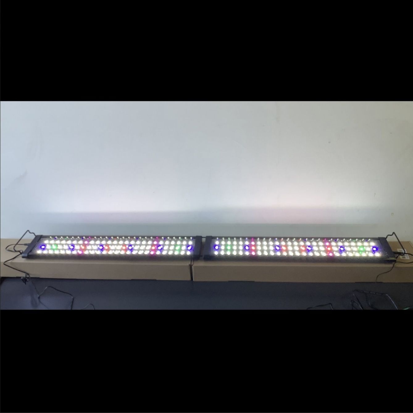 The picture is my display. The one you’ll get is brand new in the box. This is for 2 X 22 inch aquarium lights. Can adjust from 46-50 inches. You can control the 2 lights separately.