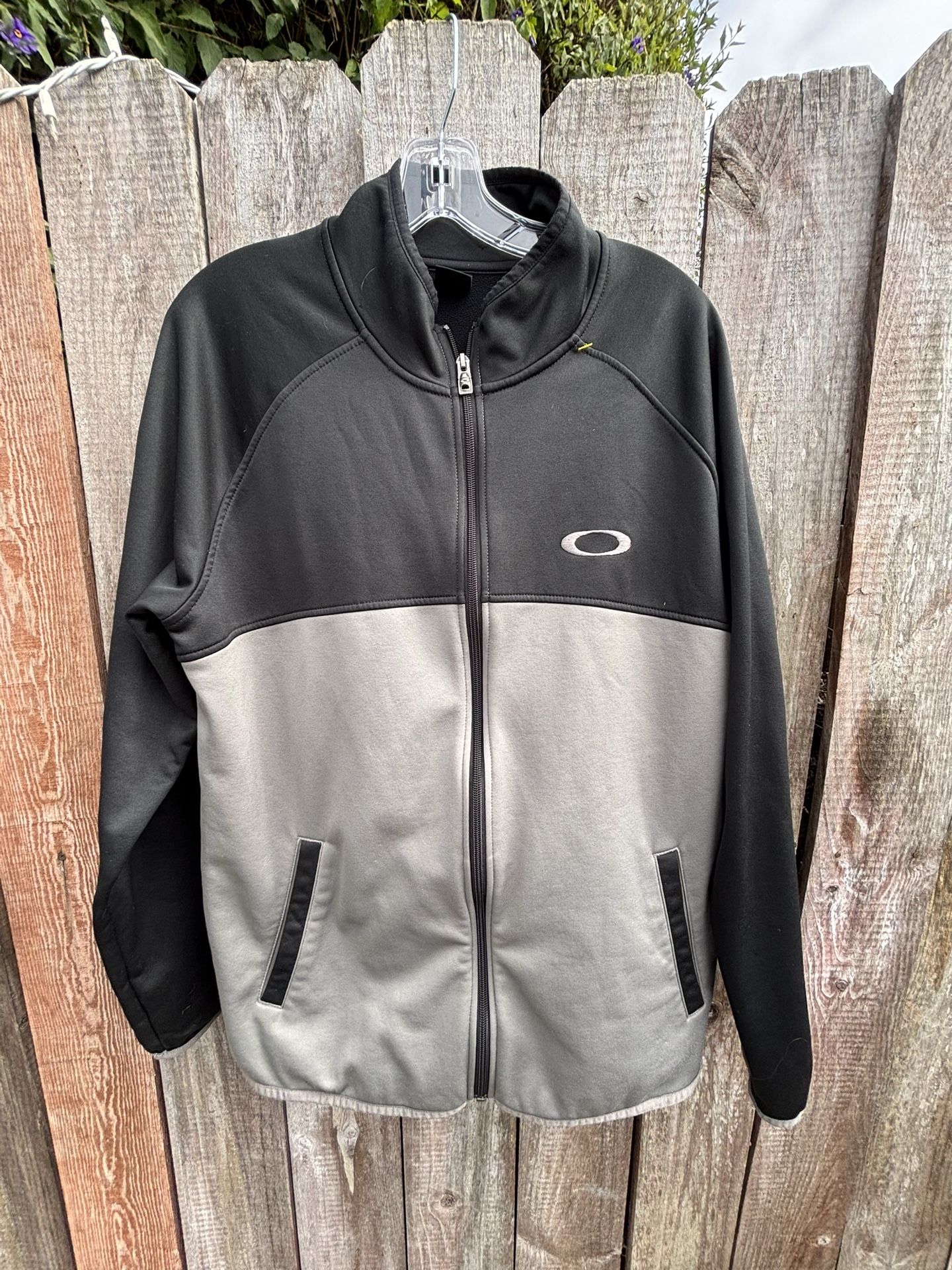 Men’s Oakley zip up size large in perfect condition. Logo on the front and black and grey on front and back.