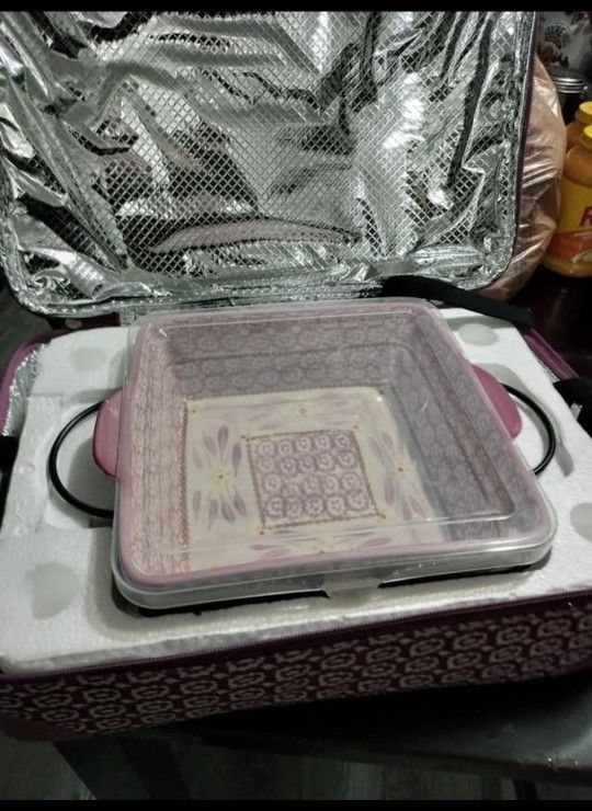 Moving Sale --Temp-tarions presentable ovenware by Tara carrying case