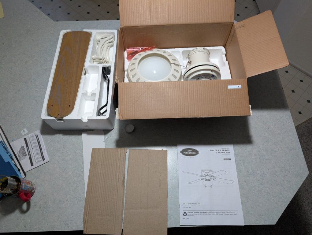 Brand new in the box, Only opened. The blades can be white or the color shown in the photo.