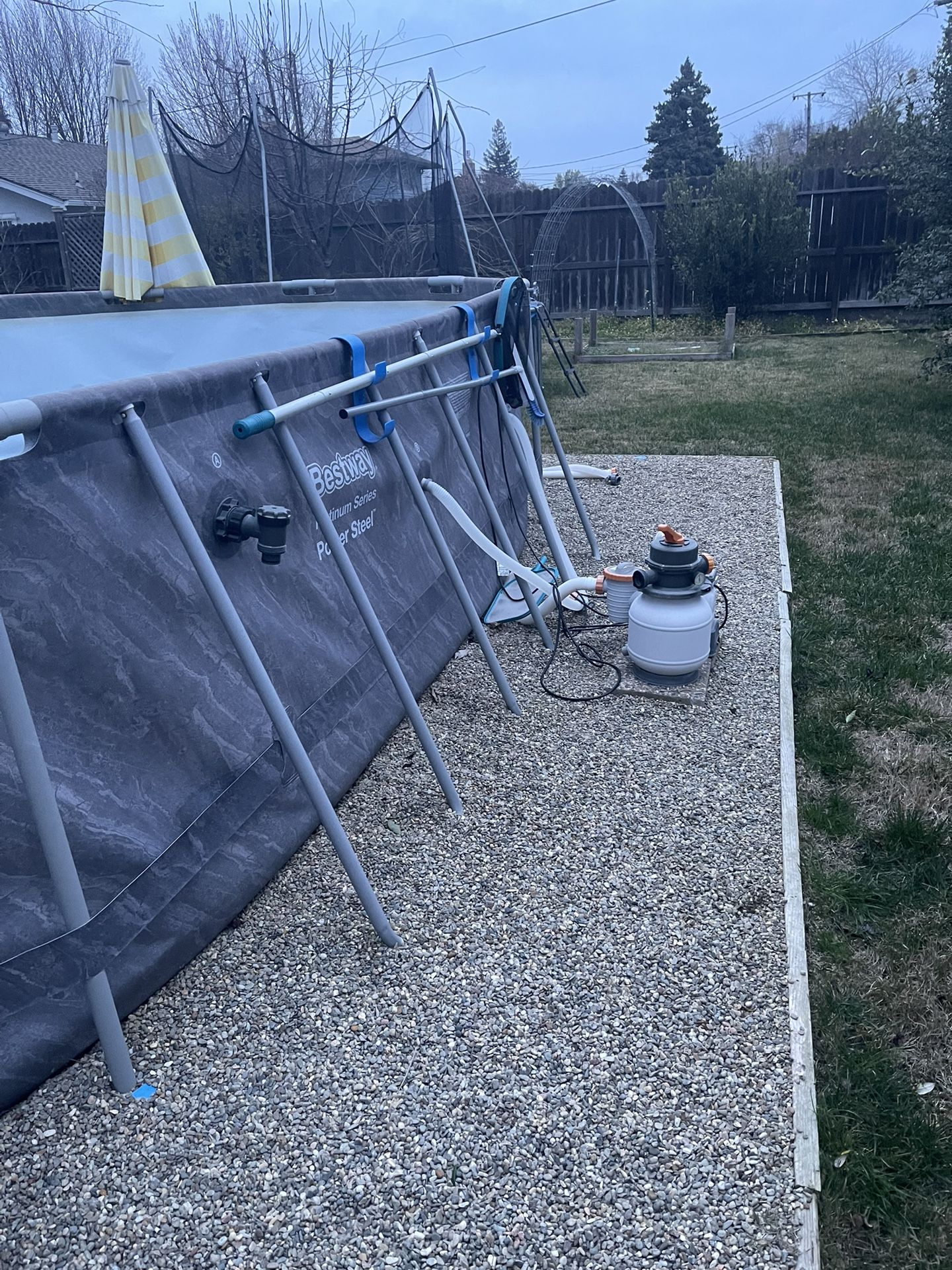 Bestway above ground pool from Costco . Comes with ladder and sand filter pump. 2 years old. Comes with pool net and brush. FREE MUST PICK UP