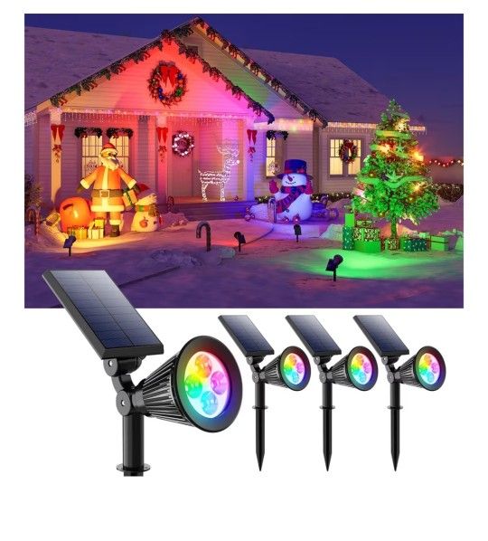 4 Pack Color Change Solar Spotlights Outdoor for Christmas Decorations, Tree, Snowman, Santa Claus