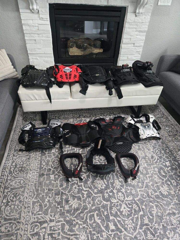9 Chest Protectors Adult & Kids Sizes 5 Neck Protectors Included Good Condition $30 Each Chest Protector - 9 Left $20 Each Neck Protector - 5 Left Icon Field Armor Stryker $50 Brands Include: Fox, Fly, Thor, AlpineStar, EVS, Icon