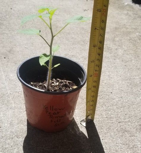 Full sun In a 4 inch tall nursery pot It produces yellow pear shaped tomatoes.