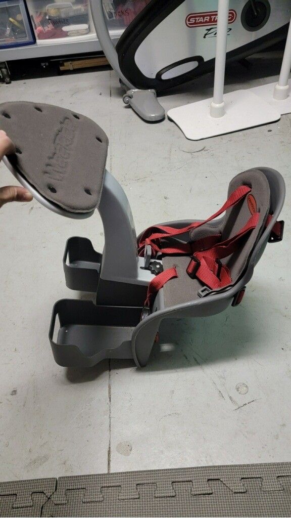 Seat harness, padded front bumper and height-adjustable foot cups Steel support bar doesn't interfere with brake cables or bike gear For kids ages 1 year and up; maximum capacity of 33 pounds.Child's weight enhances rather than impairs your bicycle's stability. Obo and trades accepted