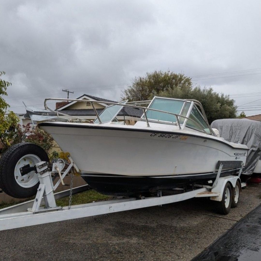 1987 19' Grady White 190 tournament walkthrough. 2001 200HP fuel and oil injected 2 stroke that runs excellent. Galvanized shoreline trailer tandem axle has new lights, new Jack, wheel bearings are good tires are good. Deck is solid. Pink slip for boat and trailer in hand asking $ 5,000 OBO