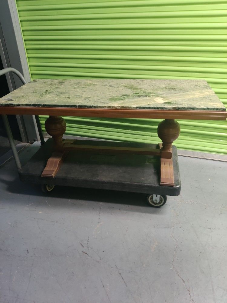 A coffee table and two end tables that are different heights. There is damage on the tables, one of the end tables has more noticeable and visible damage (broken stone and a crack). You can see it in the pictures. Otherwise, they are heavy and quality pieces. Price is negotiable. Need them gone!