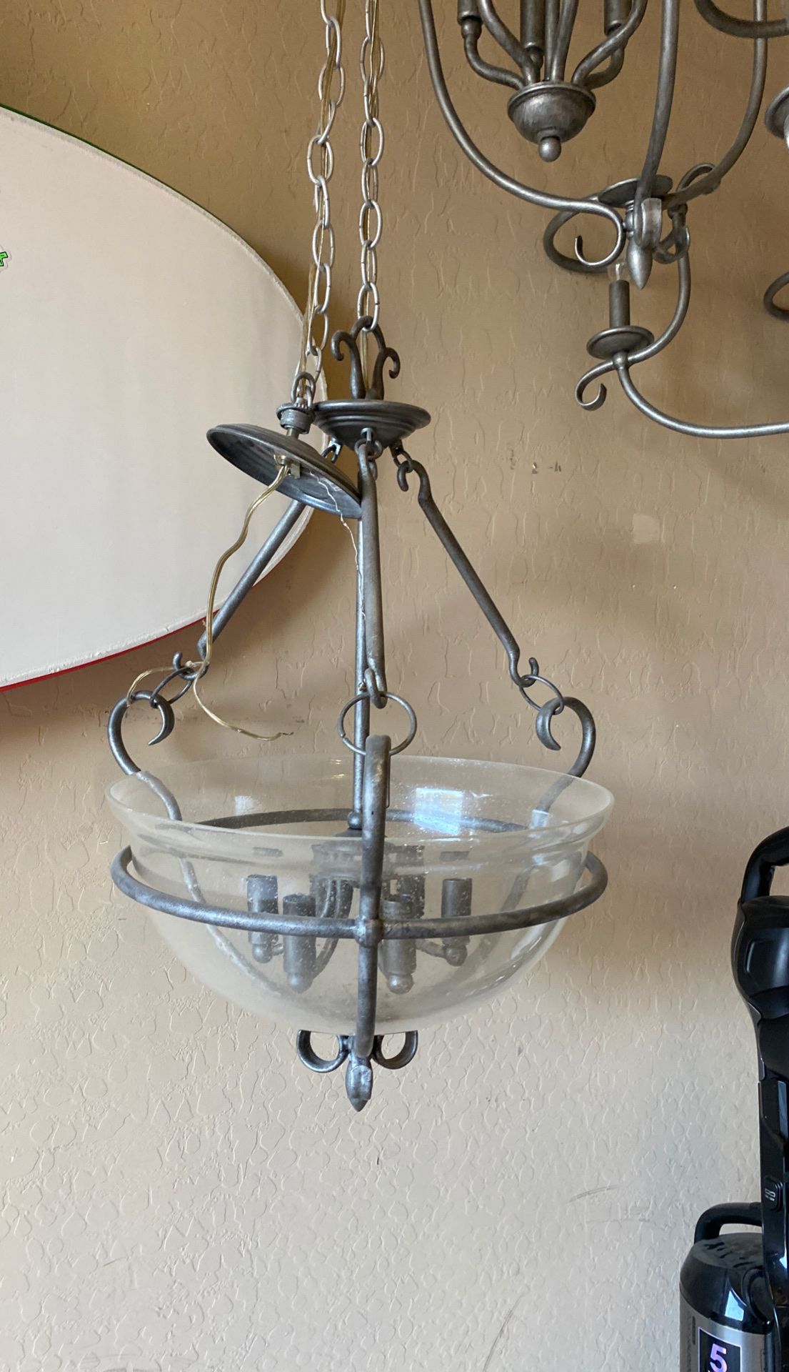 5 total. 2 pendent, 3 large chandeliers. Silver. All glass globes are good.