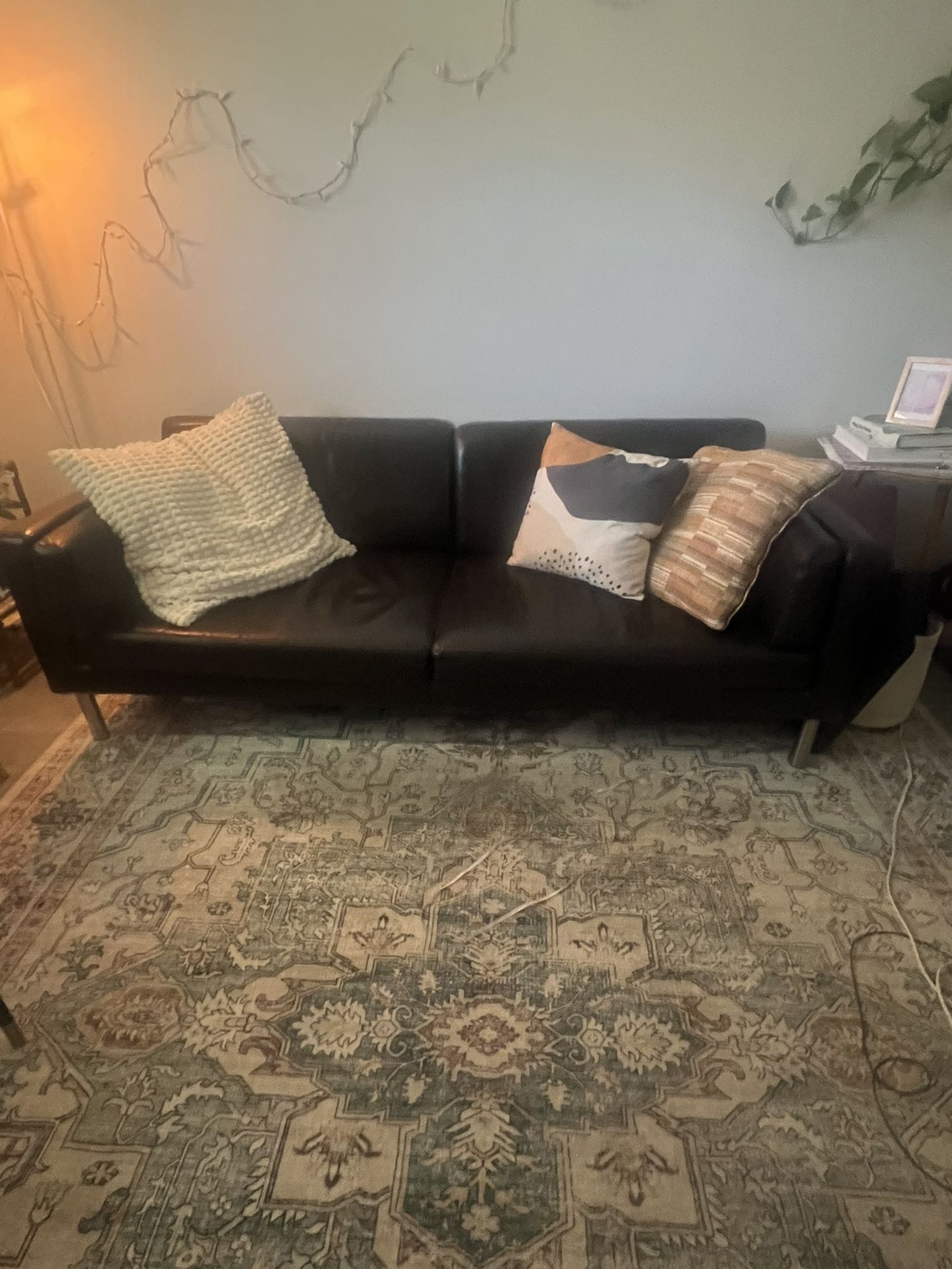 Great sofa/couch specially for small spaces. Comfy, and easy to clean and adapts to any style of design. Is in good condition, pet free and smoke free house. It has only a few imperfections and tears that are included in the pictures but barely noticeable.