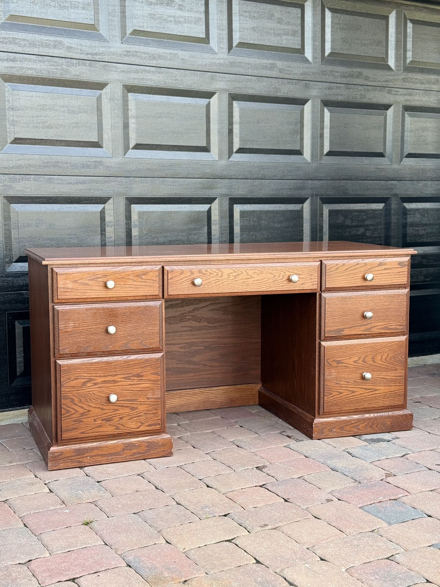 This solid wood desk provides ample storage, optional soft close drawers and drawer locks and your choice of wood and stain. The River Valley Executive Desk comes to you from a woodshop in Ohio where the most beautiful solid wood office furniture is made.
