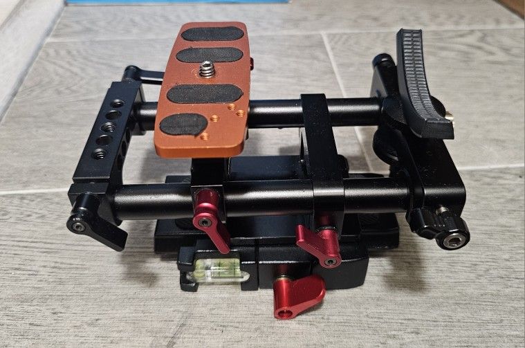 Item newer used. Got it for school project long time ago. I sold my GH5 and can not use it. It is compatible with all cameras DSLR, SLR, MIRRORLESS or CAMCORDER. The value of the product is more than $200. It has lens holder for tele lens. Some parts are extra like lens holder (NO CHARGE). Very light and sturdy. NO SCRATCHES, NO DAMAGES. GREAT VALUE. SOLID BUILD. Neewer Aluminum Alloy Quick Release Plate Adapter with 1/4 3/8 Screw for DSLR Camera Monopod Tripod Compatible with Manfrotto 501HDV 503HDV 701HDV 577/519/561/Q5 (Red) The red safety pin prevents accidental slipping, which protects your camera/camcorder. Bubble level shows how much of your inclination