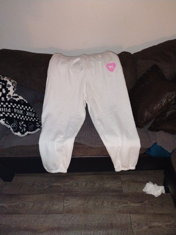 Victoria Secret Pink White Sweatpants Xl