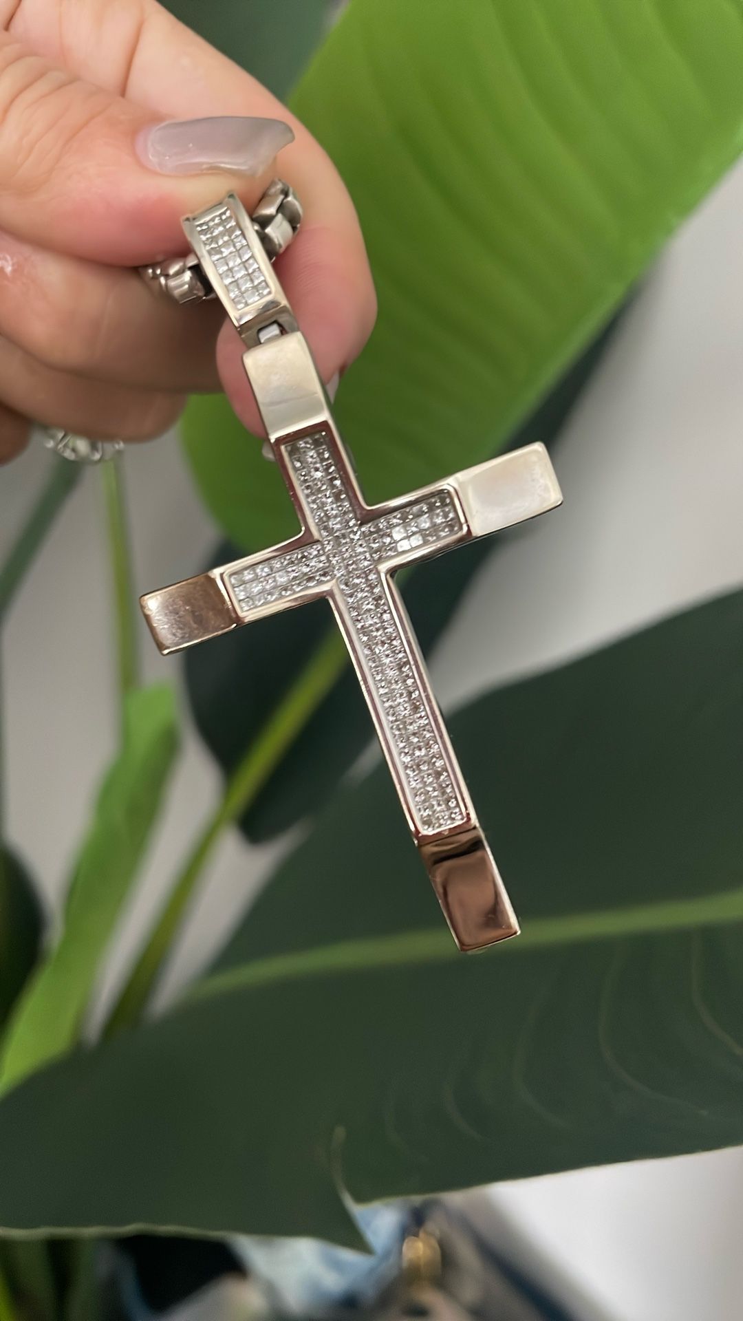 14k White Gold Diamond cross