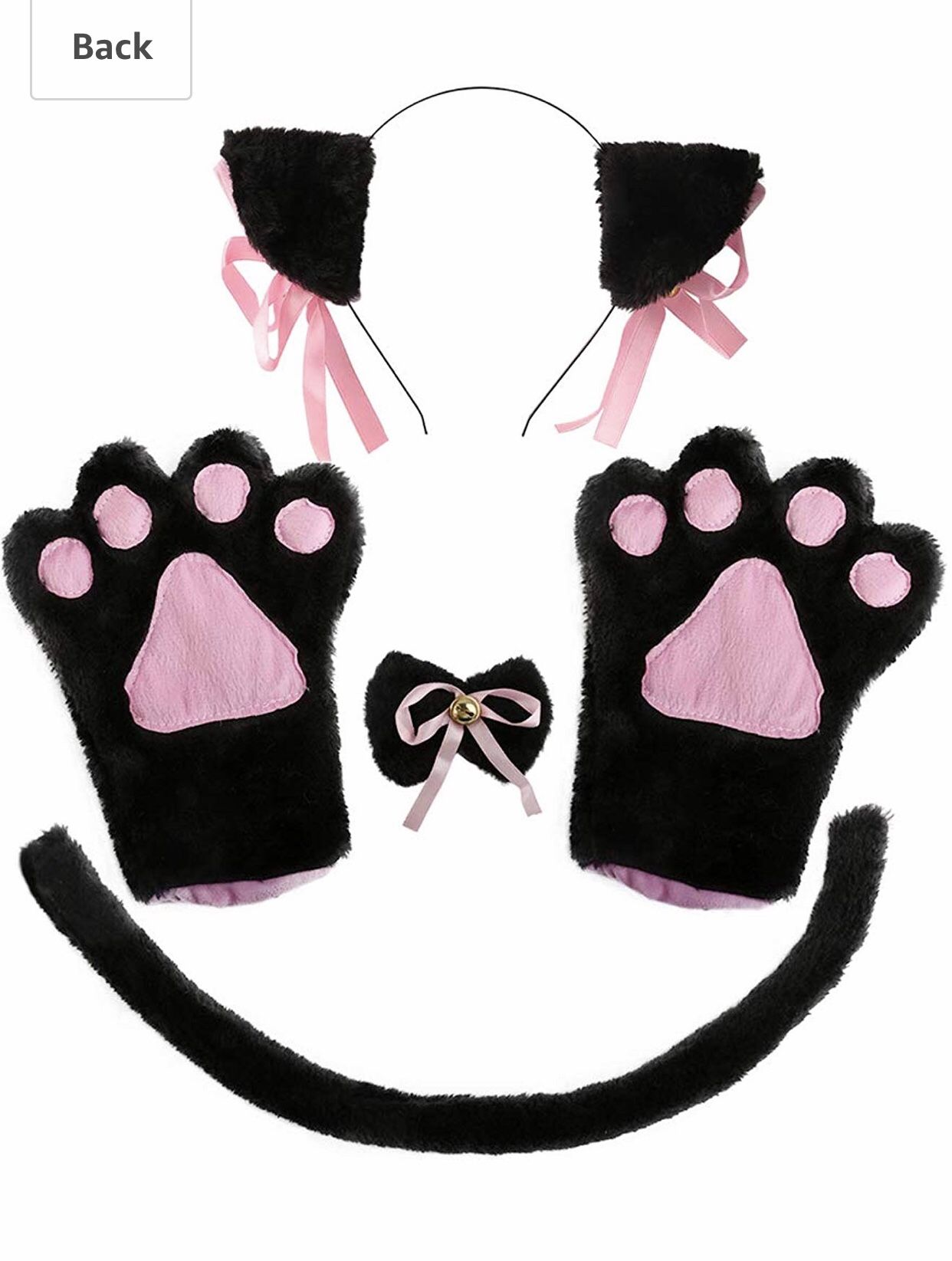 Brand new and not returnable Super value pack: The cat cosplay set includes 2 Cat Paw Fingerless Gloves, 1 Ear Hairclip with Bells, 1 Bow Tie, 1 Cat Tail. Suit for different occasions: You can wear it to go to Lolita gothic party, carnivals, masquerade, Mardi Gras, cosplay, night clubs, fashion shows, Valentine's Day, Housewarming, Easter, etc. Eye-catching: When you go to a neko cosplay, anime cosplay, or Lolita gothic party, cat costume definitely make you the foreground of public attention. Easy to wear: The cat tail and ears set is lightweight, universal-fitting design and easy to wear. Add lots of fun to your Halloween party and other theme activities! Great gift choice: One size fits most people. It's the best choice of gift to your lovers on Valentine's Day, or your children for his Christmas, Halloween Party.