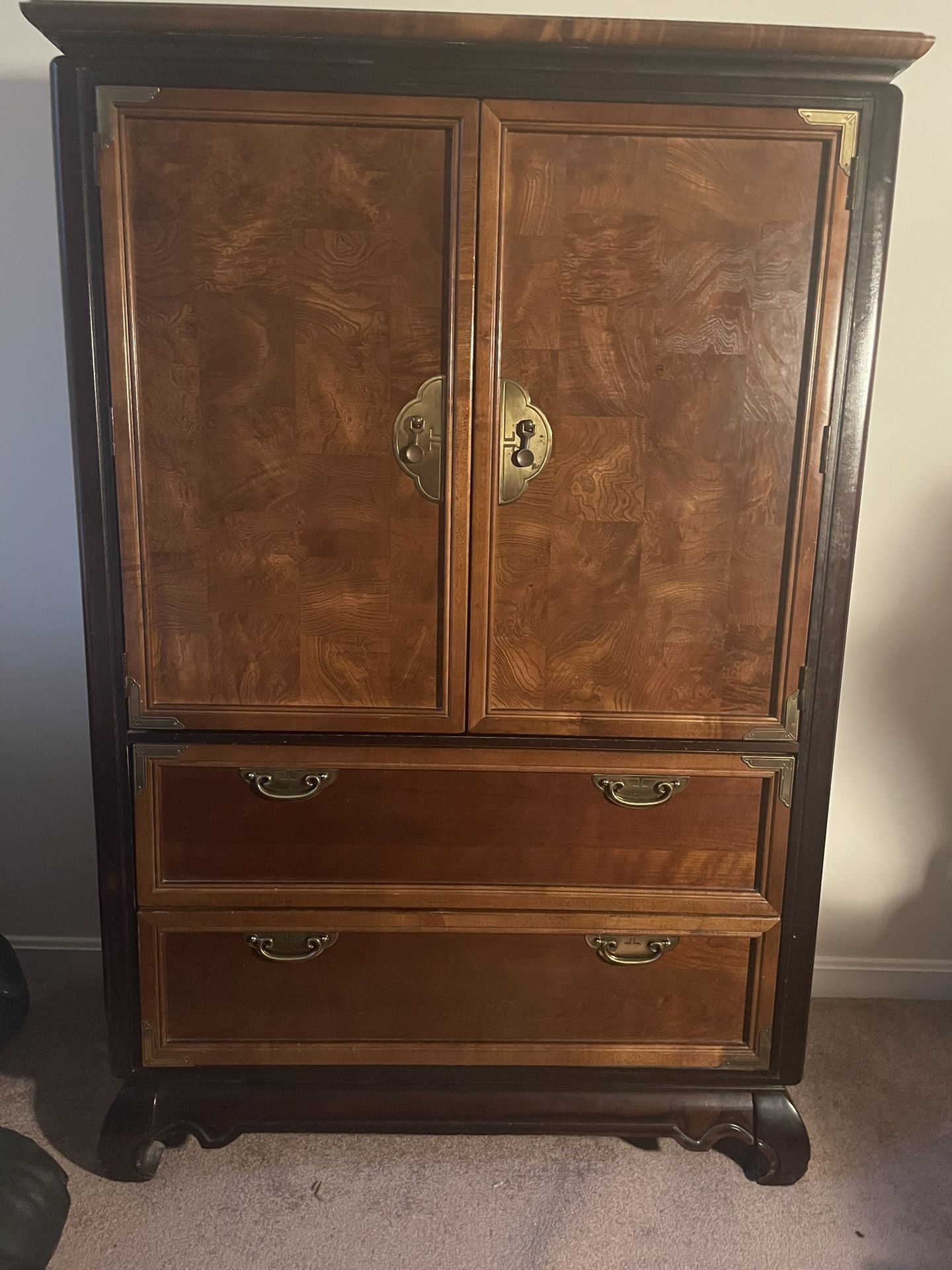 Two tone solid wood chest for $125.00. Cash only accepted.