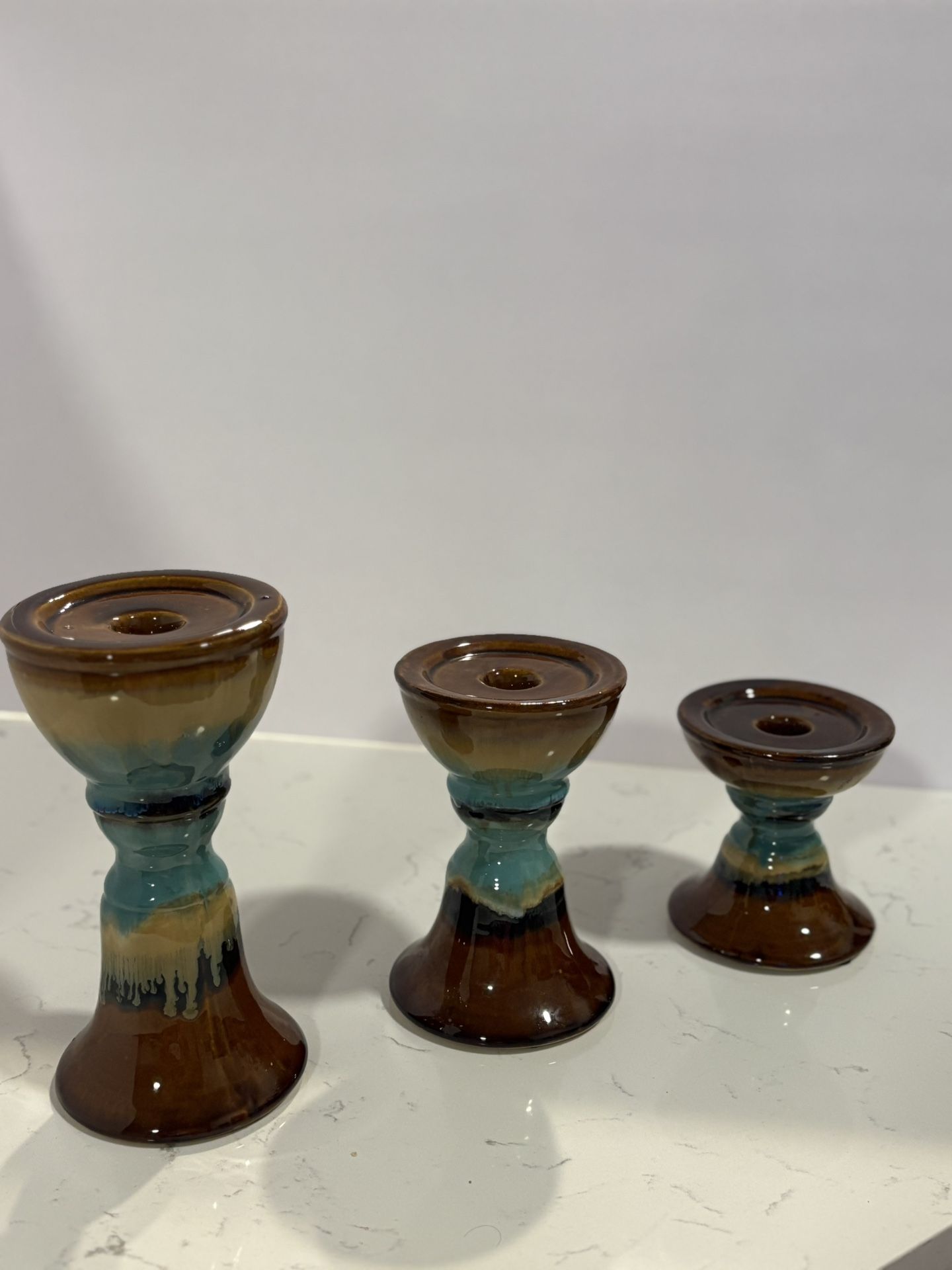 Set Of Vintage Drip Glaze Ceramic Candle Holders