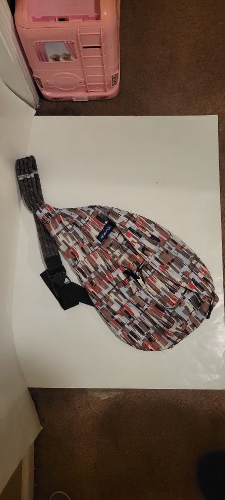 KAVU Rope Sling Canvas Bag/ Backpack/Sling Crossbody Brown White Cream Aztec Design