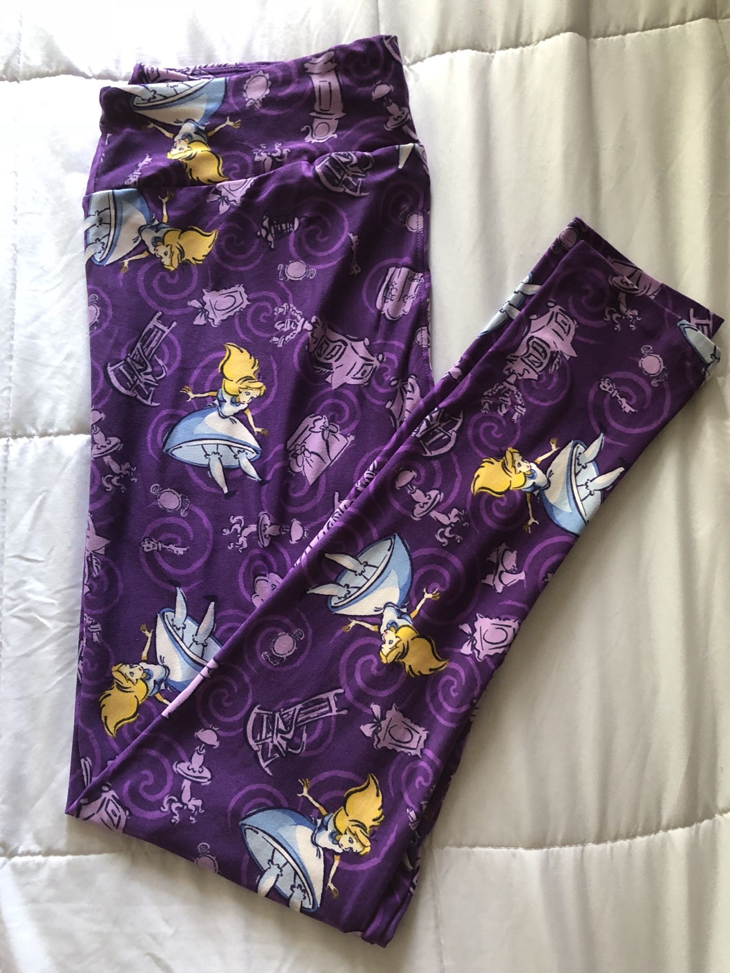 NWT LuLaRoe Leggings Purple background with Alice in the Wonderland. Size TC = Tall and Curvy 12-22
