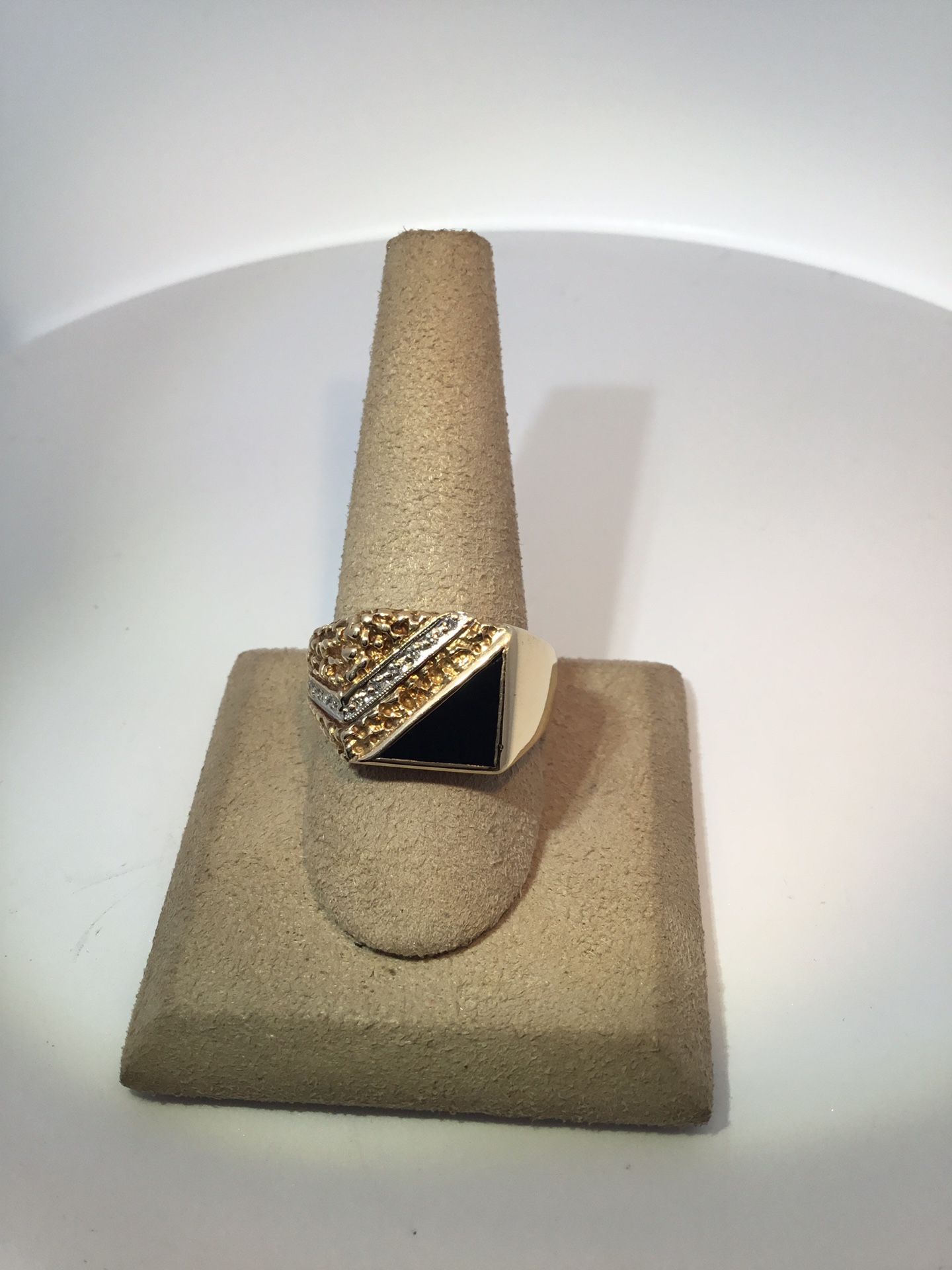 At only $3,831 An incredible value compared to your large retailers who sell this for over a $10,726 10K Yellow Gold Gents Diamond And Onyx Fashion Ring Instant financing $0 down. Only $164 a month on this one. OR take advantage of our old fashioned layaway with never an interest charge. You can also trade in your jewelry towards something new. We will even pay you cash for your unwanted jewelry Come BUY today Diamond Jim’s jewelry 10001 W. Bell Rd. Ste #127 Sun City, AZ 85351 South west corner of 99th Ave. and W. Bell Rd.