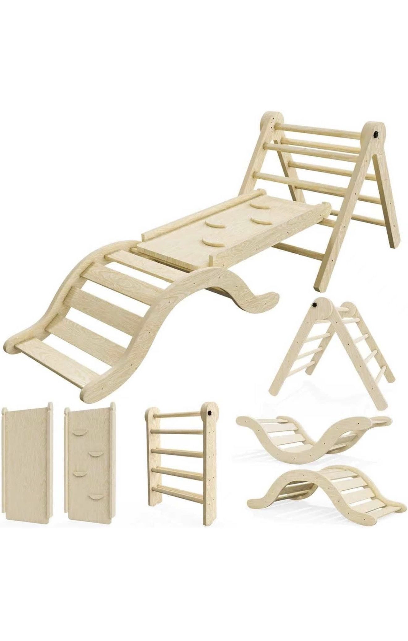 Set Climber 5 in 1, Toddler Climbing Toys Indoor Folding with Ramp & Arch for Montessori Play Gym for Toddlers and Kids (Natural)(99"