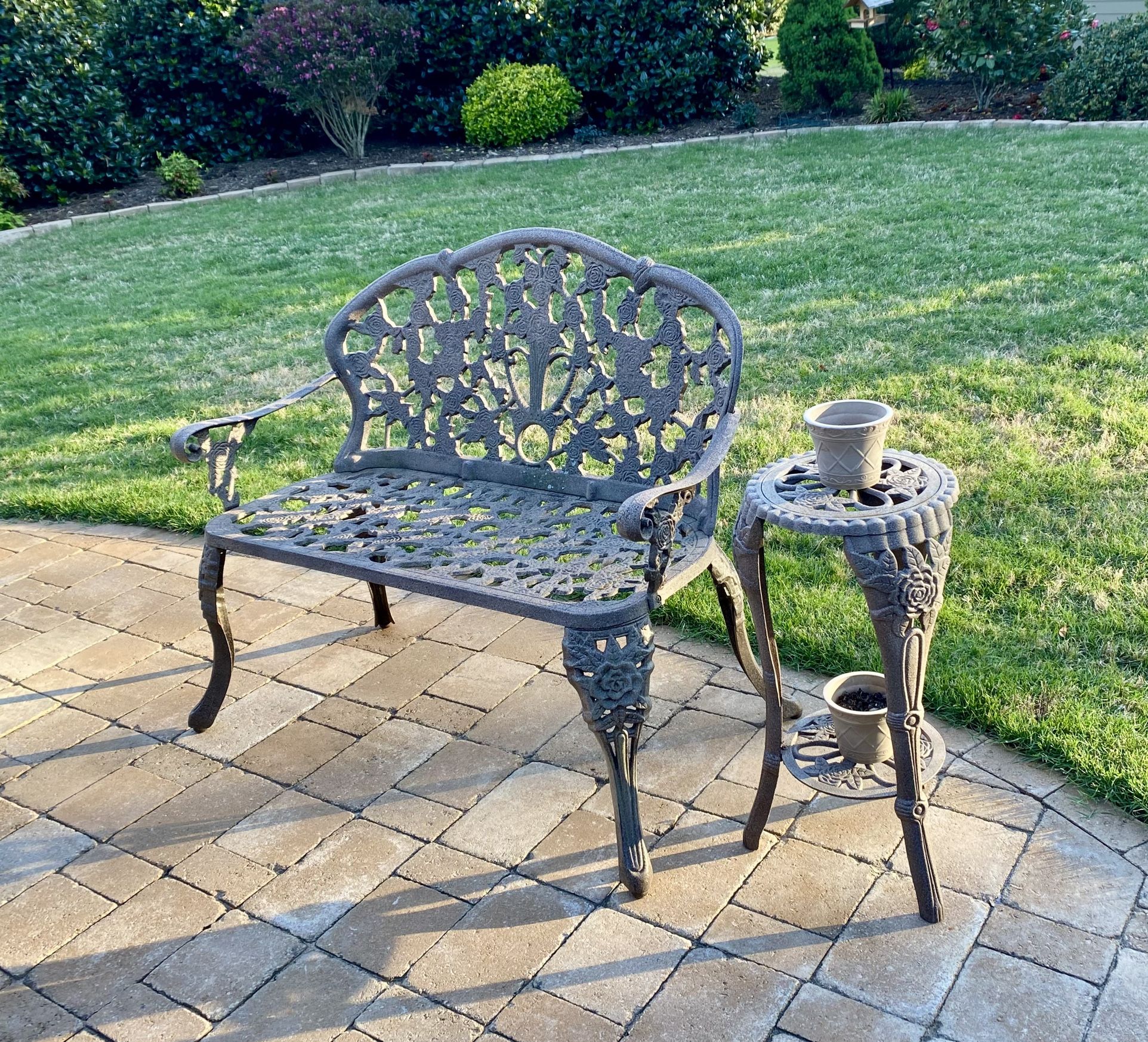 Priced to Sell!! Vintage Bench + Side Table In Stone Texture Finish (Valued at $575 - 675)