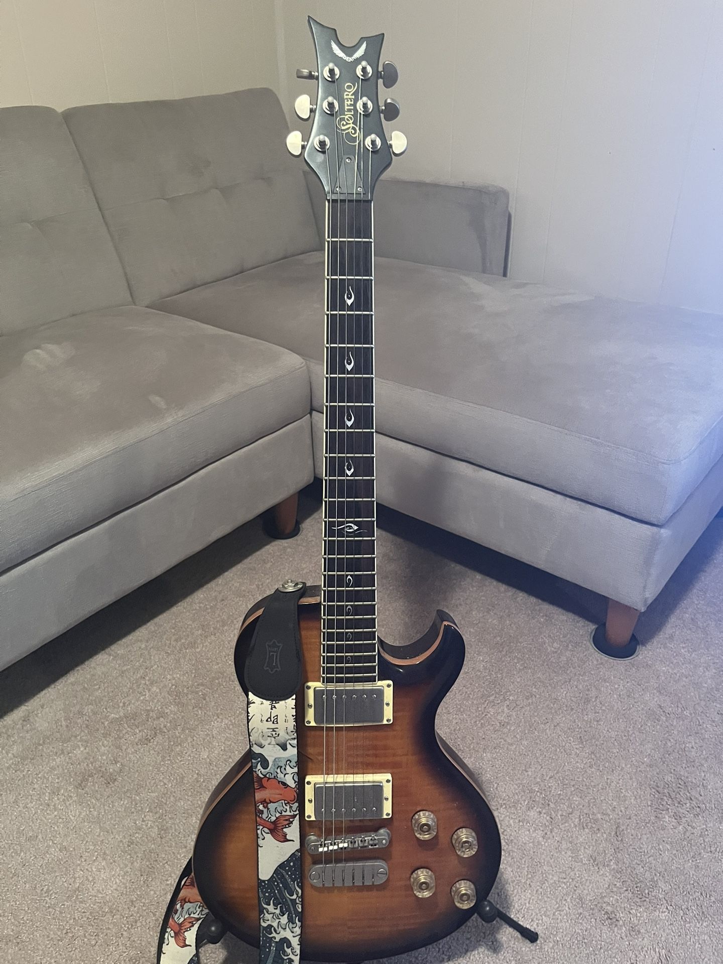 Cash only. Pick up in Springfield, VA only. Tobacco Burst Color Solid Body Electric Guitar Includes Washburn hard-shell case, guitar strap, and stand. Works and sounds great.