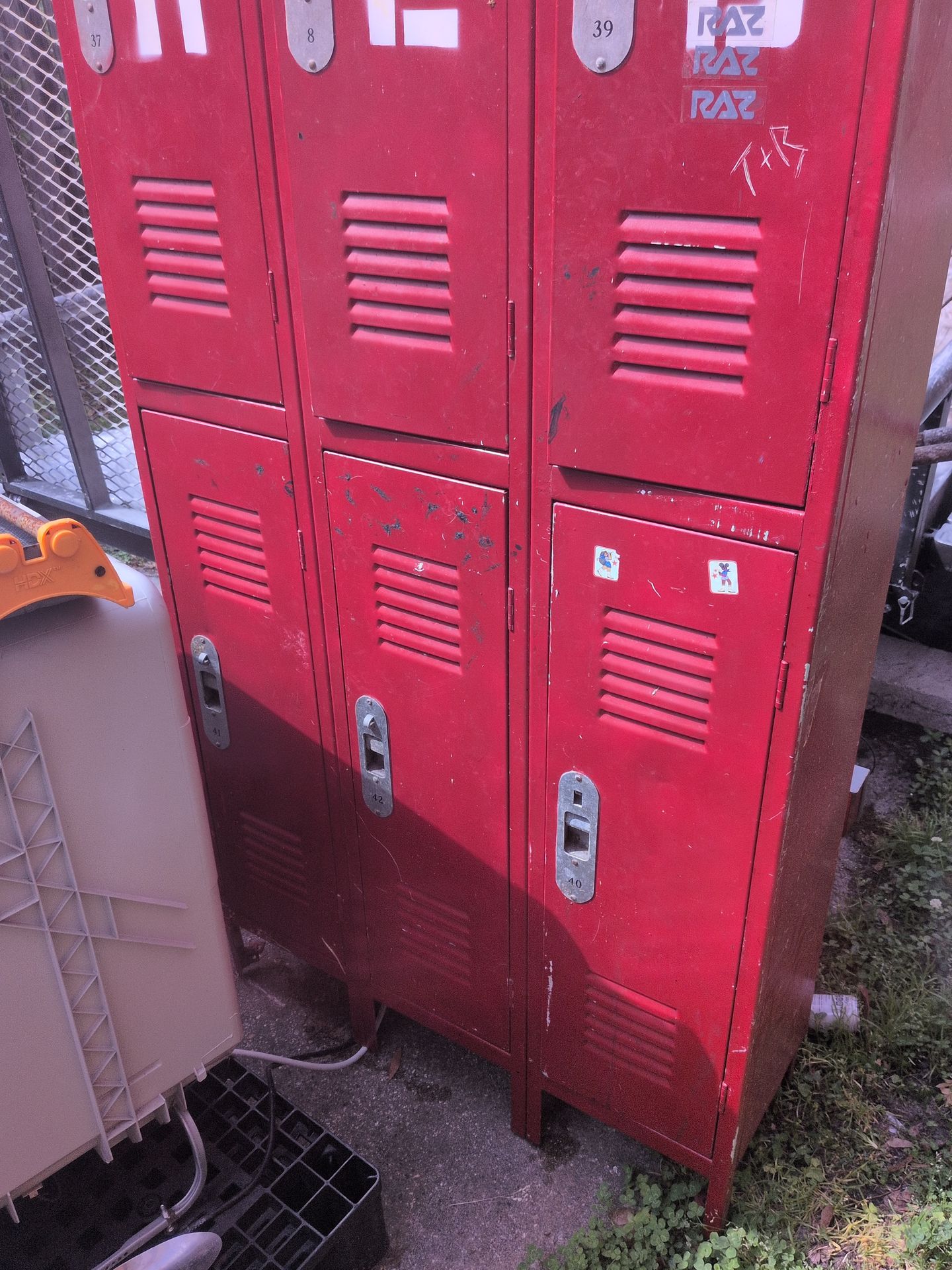 6 individual lockers made of heavy steel 3 on top of 3 great storage would look good in a shop or man cave