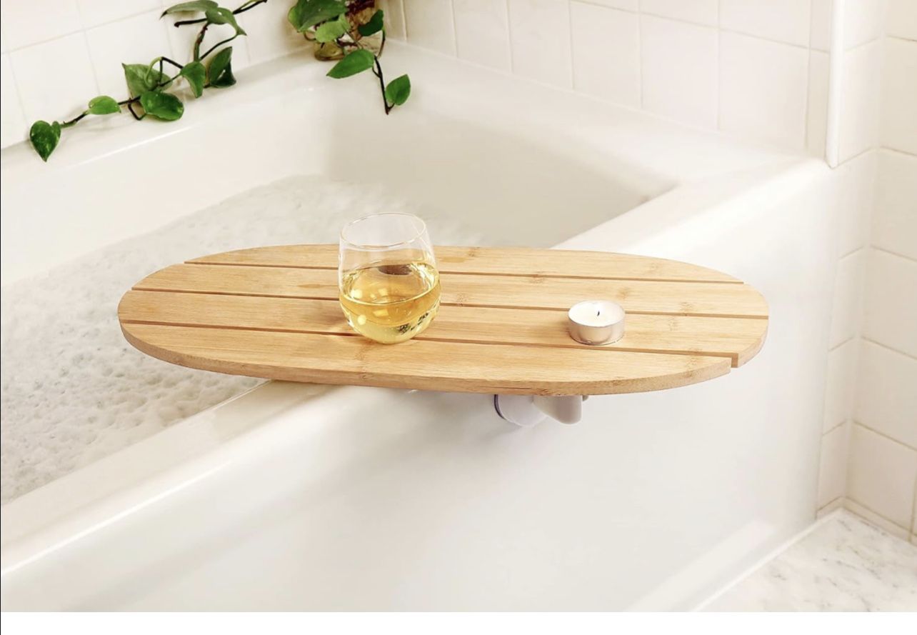 Kikkerland Bamboo Bath Bathtub Side Rotating Table Tray Caddy Accessories, Tub Shelf, Home Decor, Stress Relief
