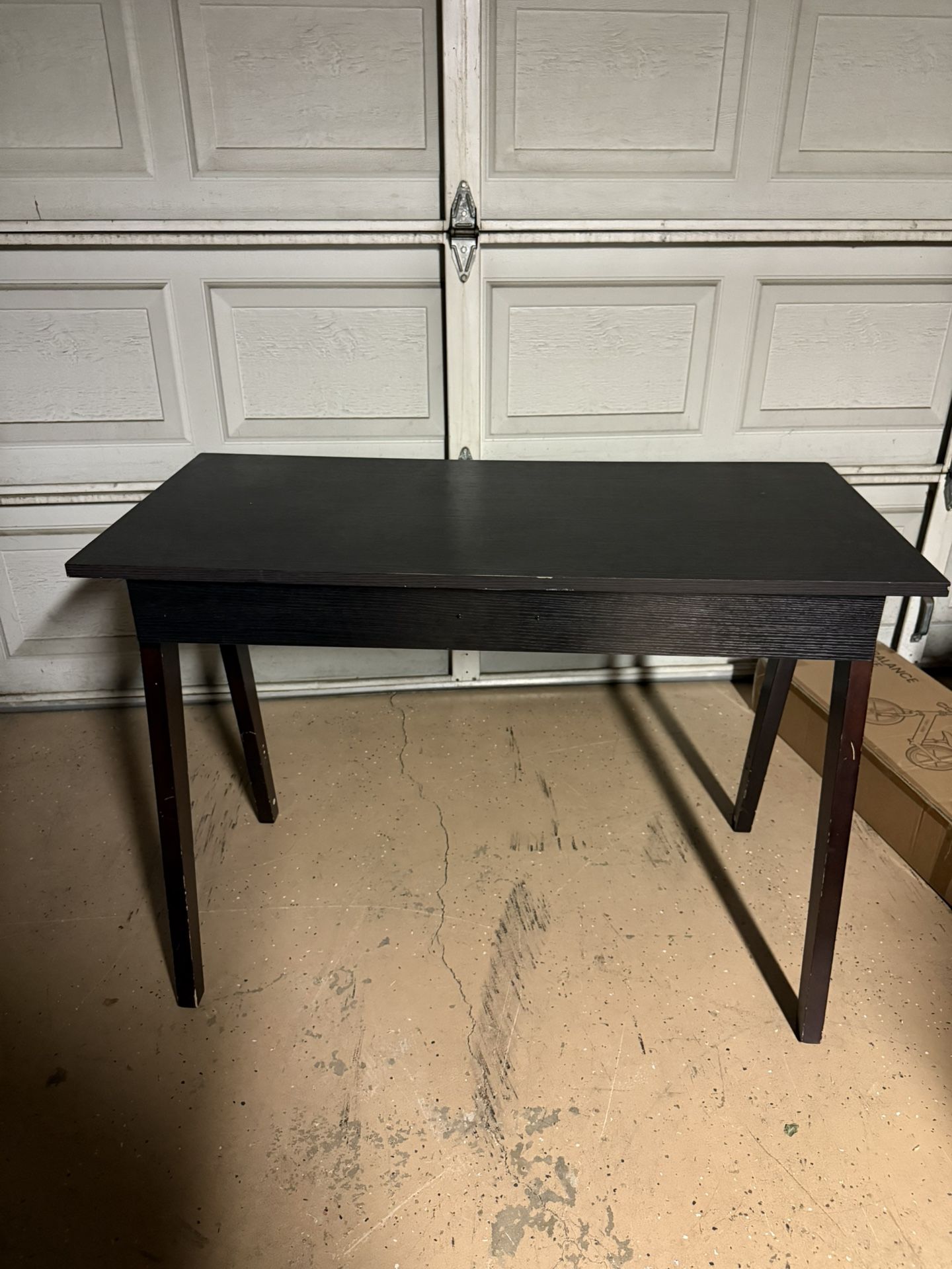 Simple desk in dark espresso color. Has scratches as pictured, but still is functional.