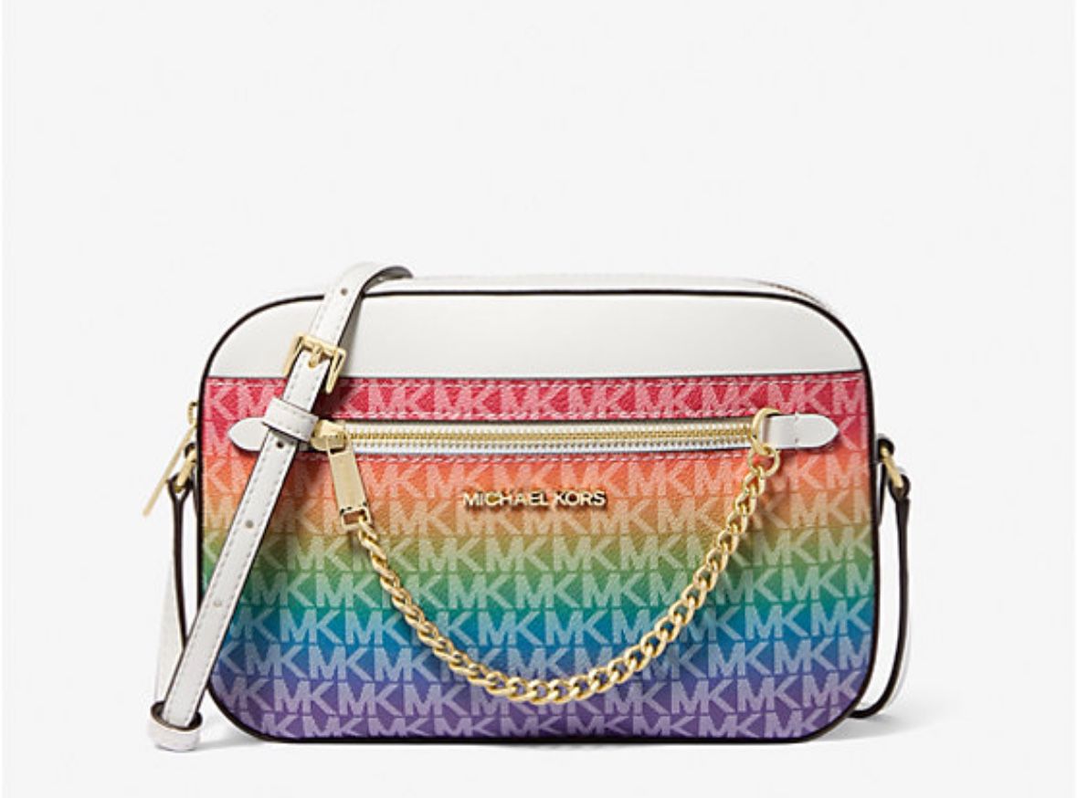 NWT π³οΈβπJet Set Large Rainbow Signature Logo Crossbody Bag π³οΈβπ Vibrant crossbody with iconic MK logo. Features a rainbow gradient and gold chain detail. Stylish and versatile.