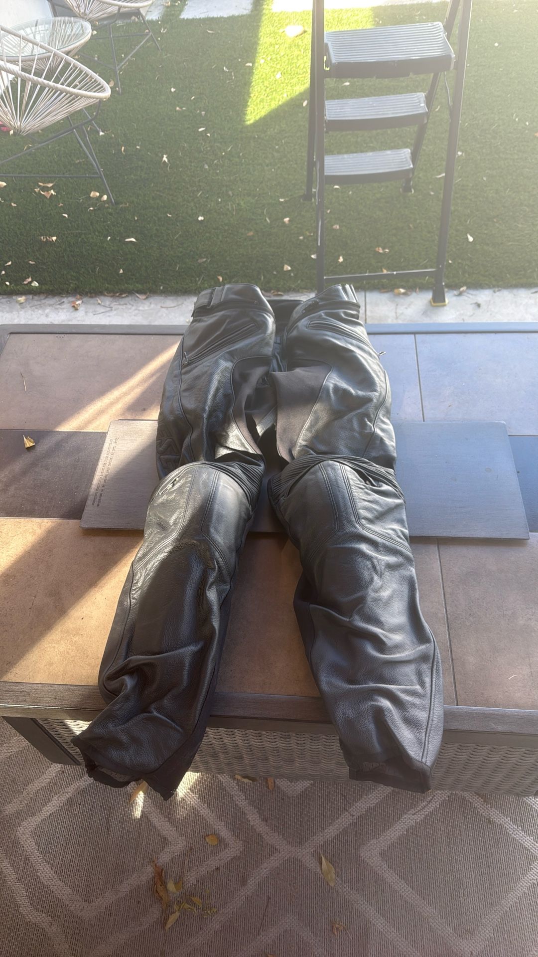 Black leather motorcycle paints size 52 Euro. Wore once. New with bag. also seller matching jacket
