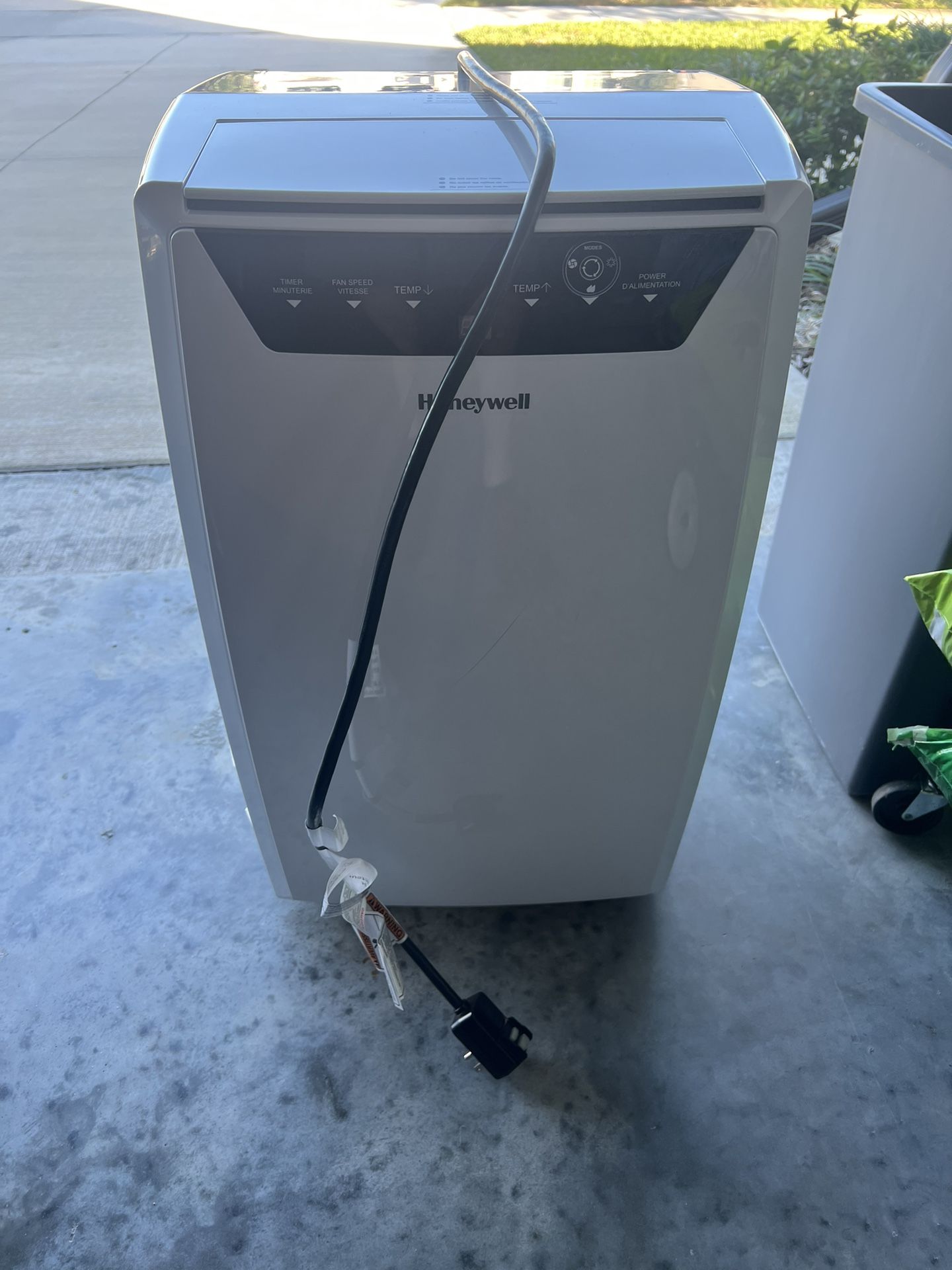Stay cool and dry with the Honeywell MN4CFSWW9 Portable Air Conditioner. The AC unit combines 3-in-1 technology into one sleek body, cooling and dehumidifying rooms up to 700 square feet. The portable air conditioner features an auto-evaporation system, a reliable dehumidifying function, and a traditional three-speed fan function to deliver optimum cooling, dehumidification, and fresh ventilation. Like new! Includes remote! $200 obo
