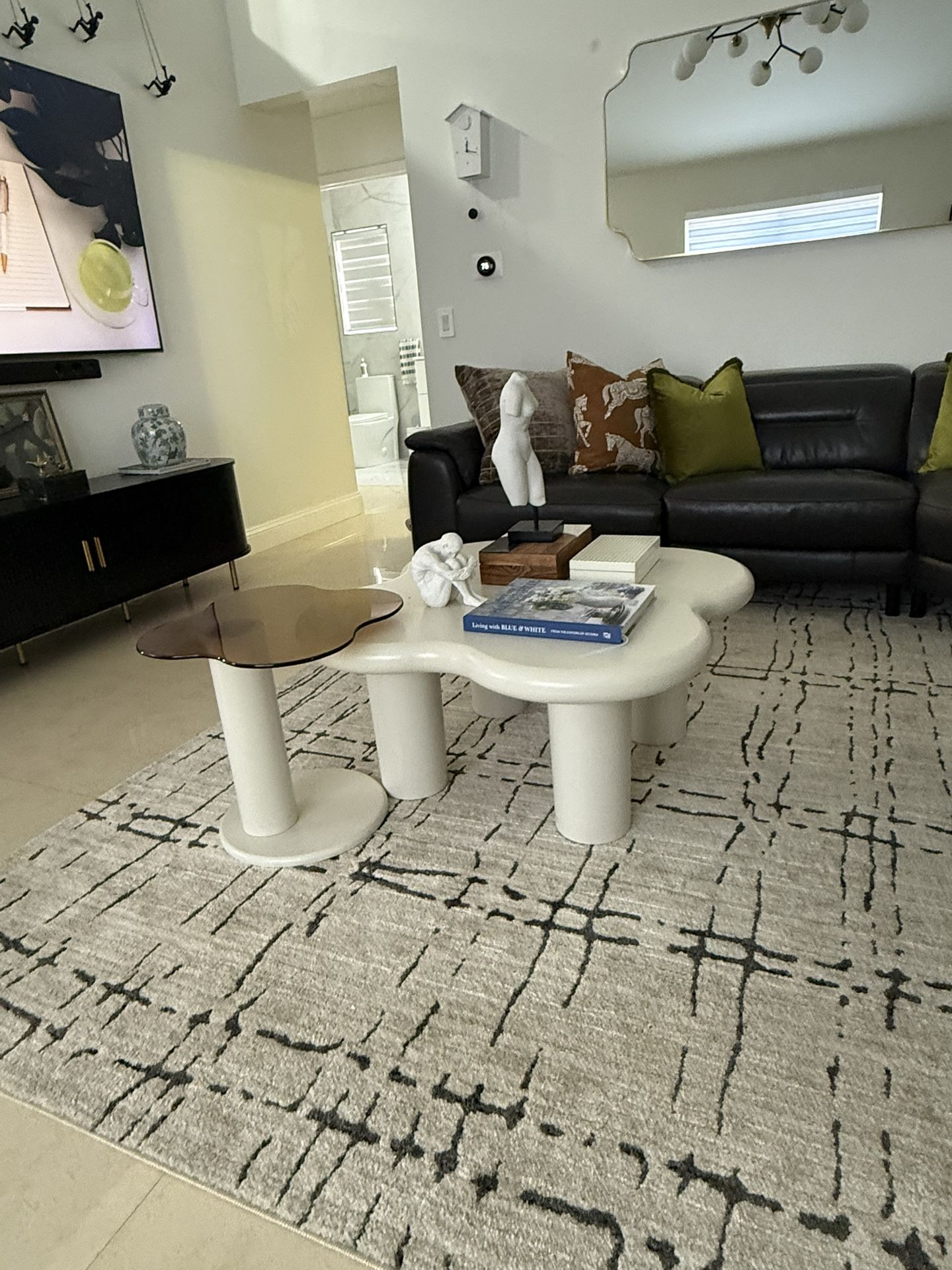 Guyii Nested Coffee Tables Set of 2, Small Tempered Glass Side Table and Large Irregular Coffee Table, White Cream 2 in 1 Modern Coffee Table, End Table for Living Room, Easy to Assemble
