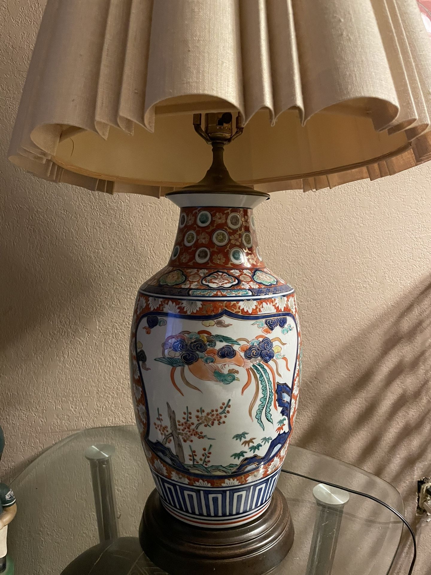 Beautiful cloisonné lamp.. Bluish /Purple, Reddish Orange hues with Turquoise/Jade colors.