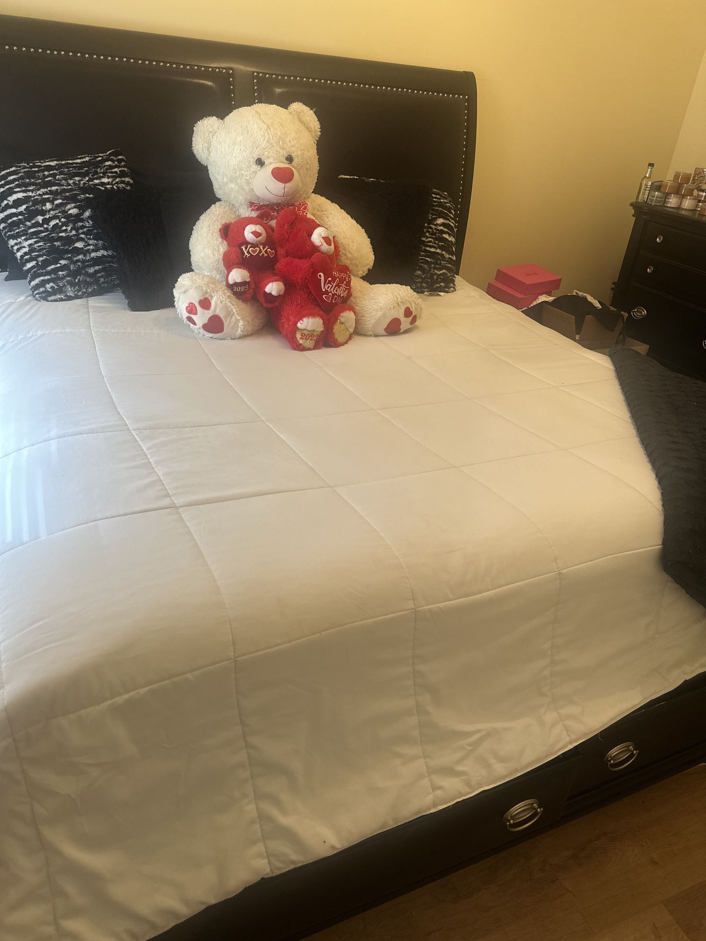 King size bed frame with upholstered headboard, built in storage drawers, and mattress included. The bed is in great condition and has been kept in a clean, smoke free home.