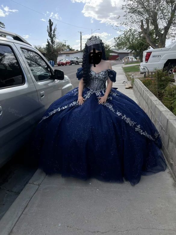 Beautiful Quinceanera dress, navy blue, almost new worn only a few hours comes with the crinolina