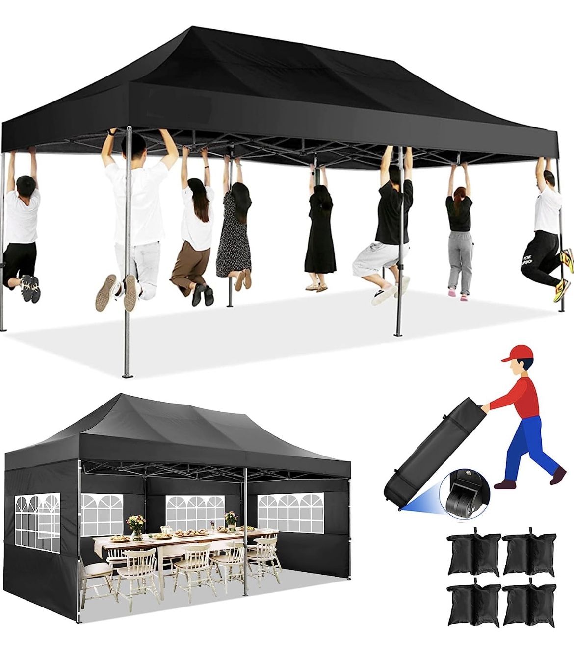 10x20 Heavy Duty Pop up Canopy Tent with 6 sidewalls Easy Up Commercial Outdoor Canopy Wedding Party Tents for Parties All Season Wind & Waterproof Ga