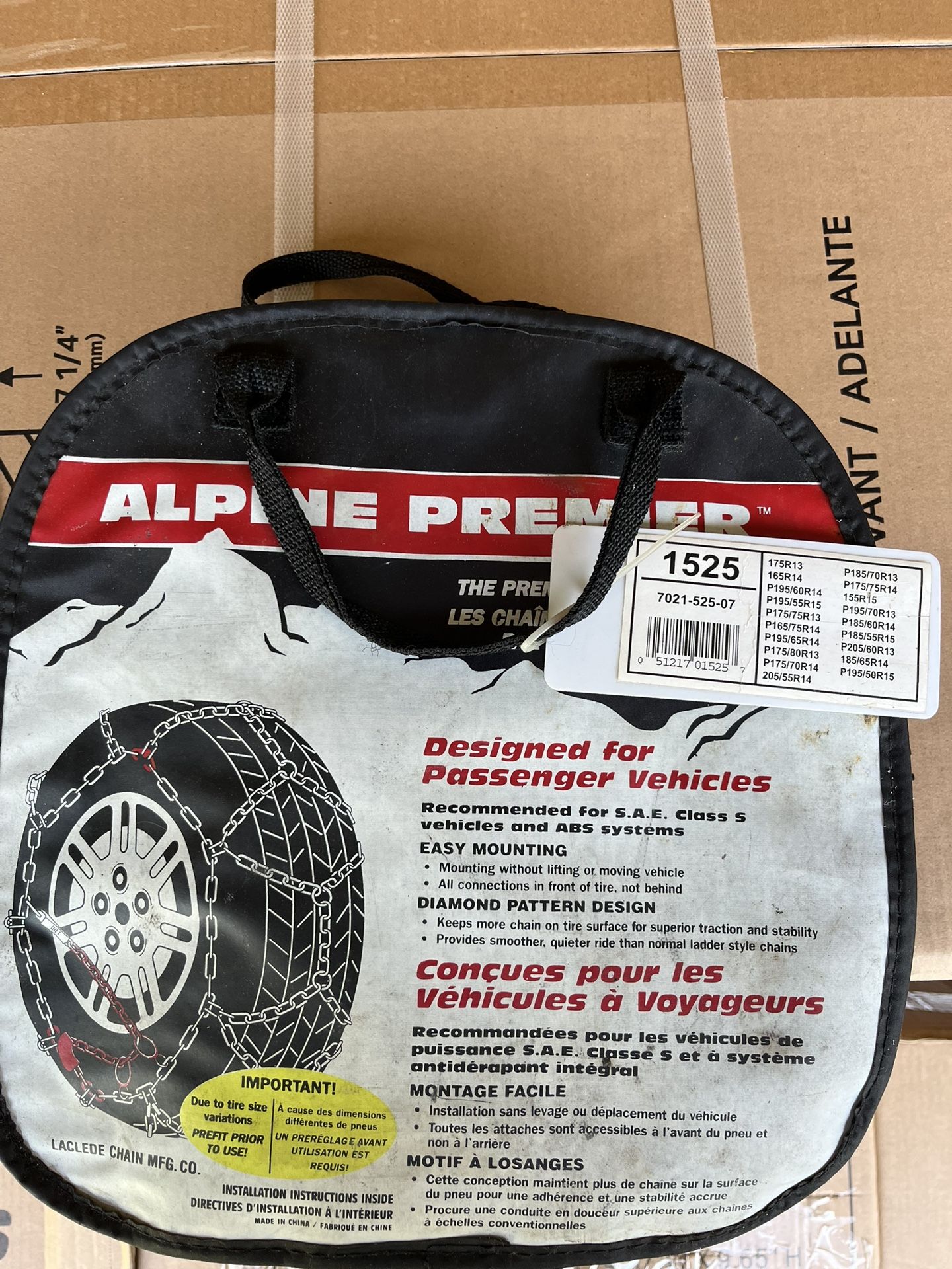 Small car chains, never used. Tire sizes on tag in photo. $25.00 obo.