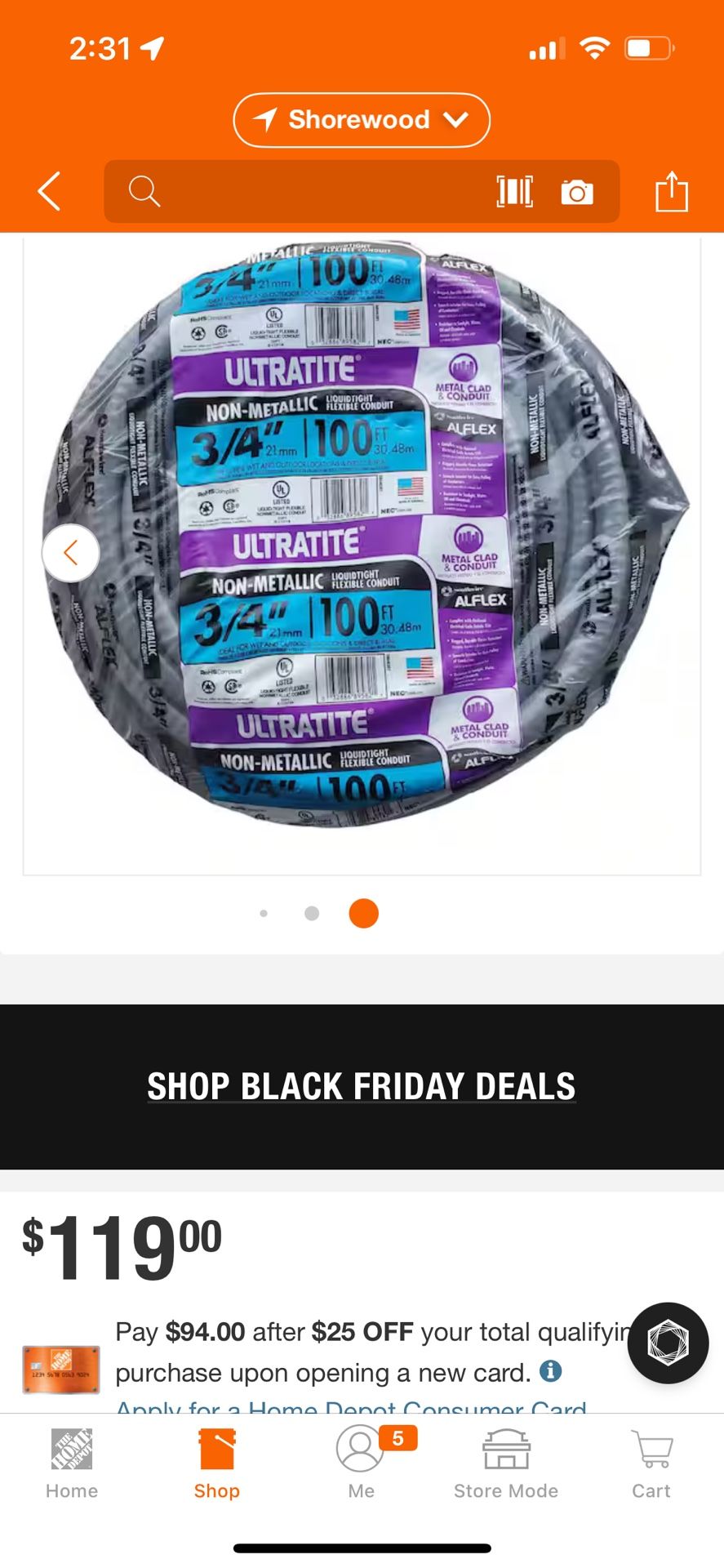 100 ft of Ultratite non metallic liquidtight 3/4” flexible conduit.