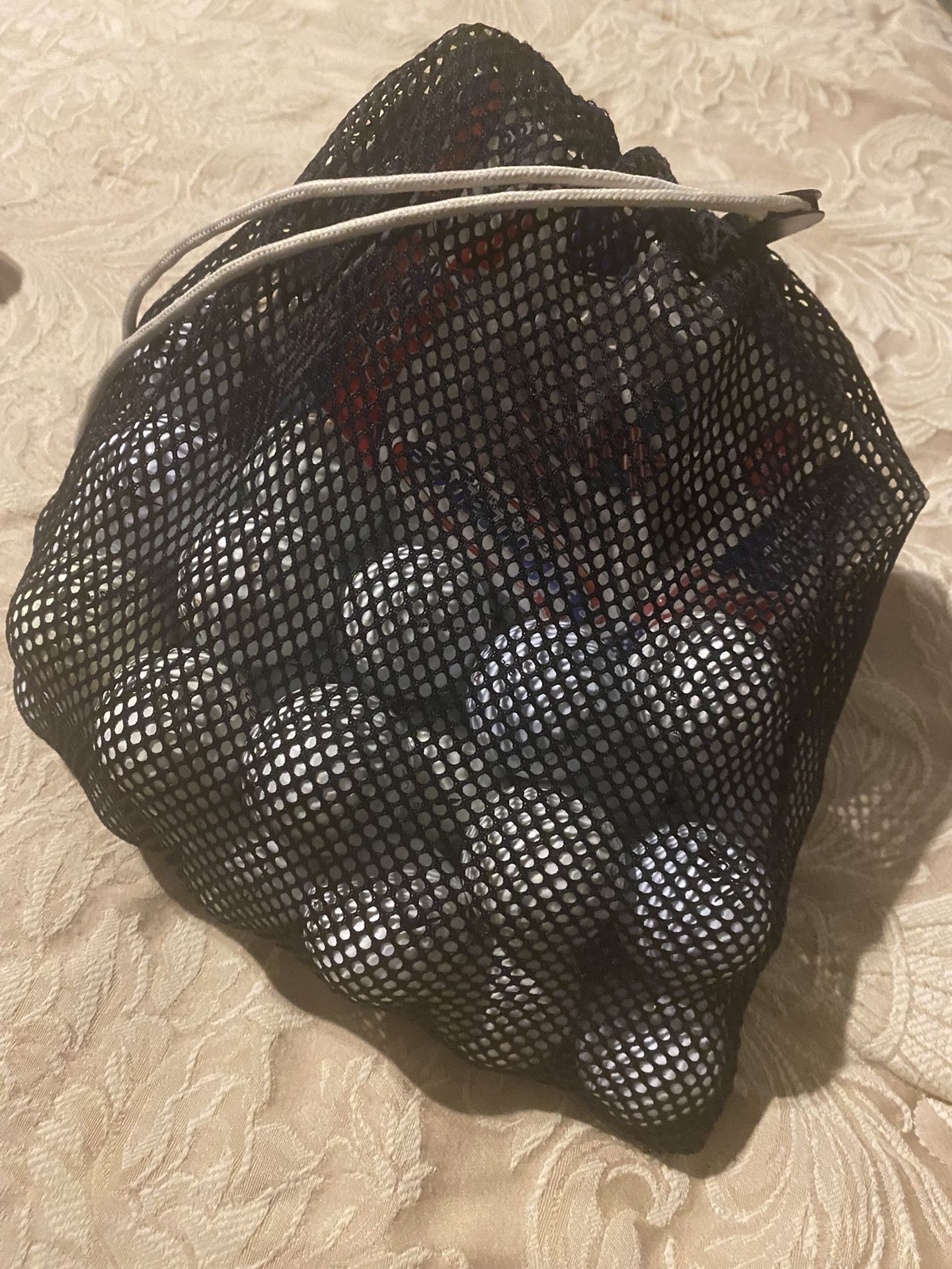 45 Name brand golf balls. Titlelist, Callaway, etc. Playable or use for practice. Plus mesh bag and new tee’s. $20