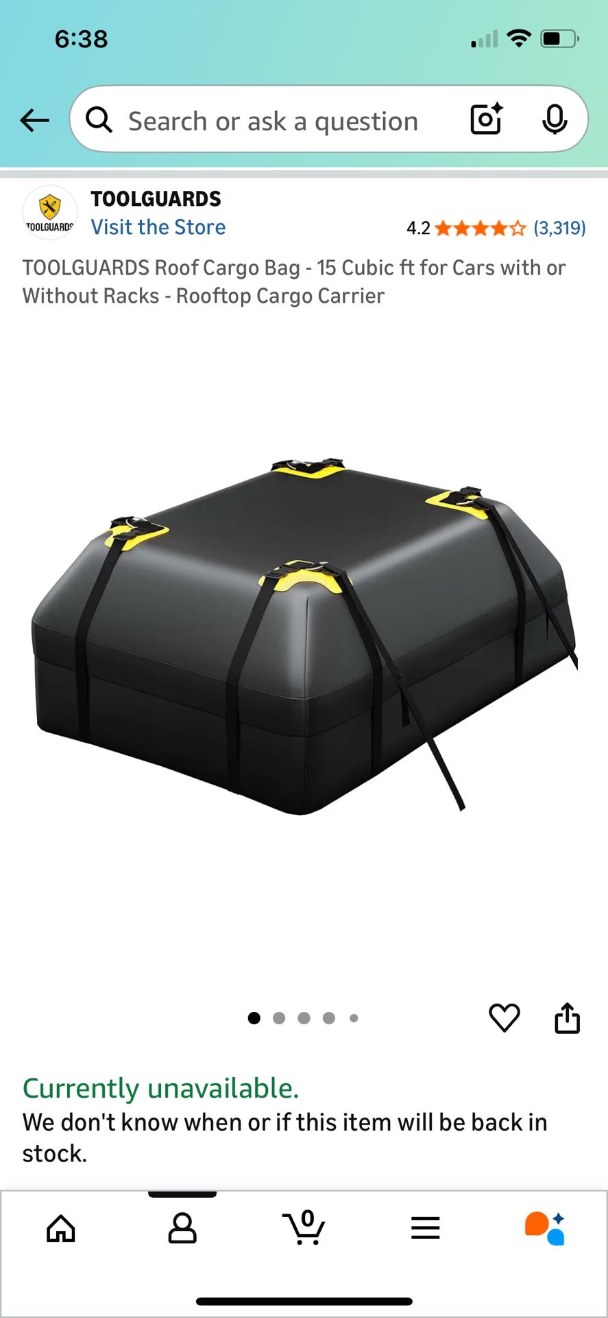 Roof top bag for any car with a hard top. Is good extra storage. It’s a soft bag with zipper an straps, in very good condition, used only once. Also waterproof