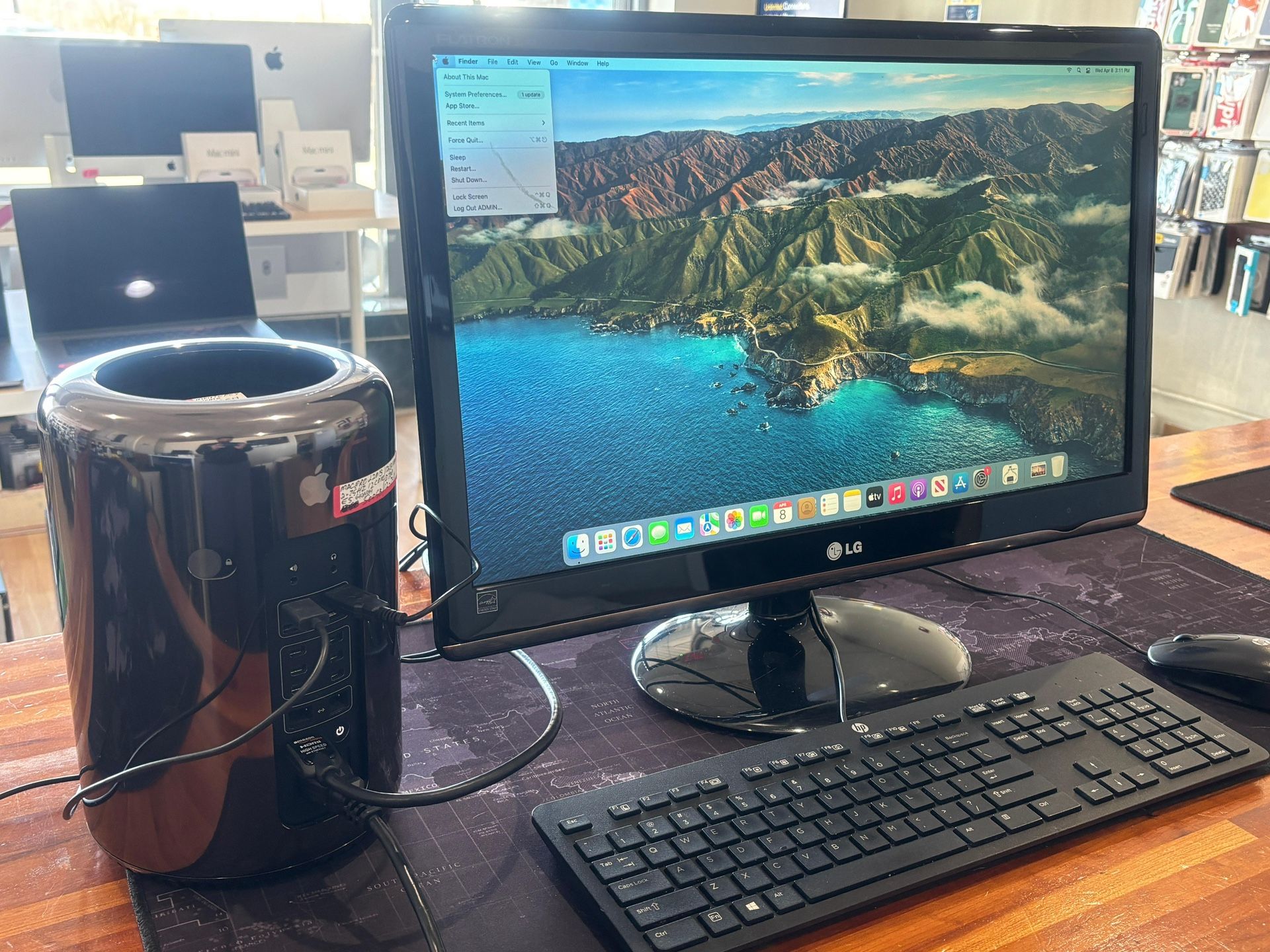 Hi, I am selling Apple Mac Pro Trash Can, Late 2013. I factory reset it, so it's like new, and all accounts and data is removed. It is fully functional. You can come and test it out, no issues. It is in excellent condition. Monitor is not included *KEY FEATURES:* This is perfect for: -Students -Work -Studios -Music Production -Photo//Video Editing -LOGIC Audio Recording *SPECS*: -MacOS Monterey 12.7 -2.7 GHz 12-Core Intel Xeon E5 processor -32 GB RAM DDR3 -512 GB Storage -AMD FirePro D700 12GB VRAM Graphics -Bluetooth// WiFi// iMessages *PORTS:* Four USB Ports// HDMI Port// Two Ethernet Ports// Six Thunderbolt Ports// Headphone port. Contact me if interested. PLEASE MESSAGE US BEFORE COMING TO ENSURE AVAILABILITY Thank you.