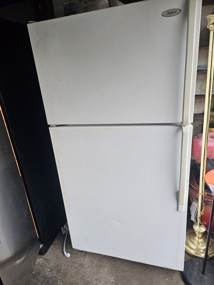 The Whirlpool ET1FHTXMQ04 is a standard, full-size, top-freezer refrigerator, around 20.9 cubic feet, featuring ENERGY STAR® qualification, adjustable glass shelves, humidity-controlled crispers, and often includes an internal water dispenser and optional ice maker, known for its functional design, and Up-Front temperature controls. In fair condition given the age, my mother just passed and my dad is looking to clear out some things from the home that are no longer needed to help supplement his loss of additional income.