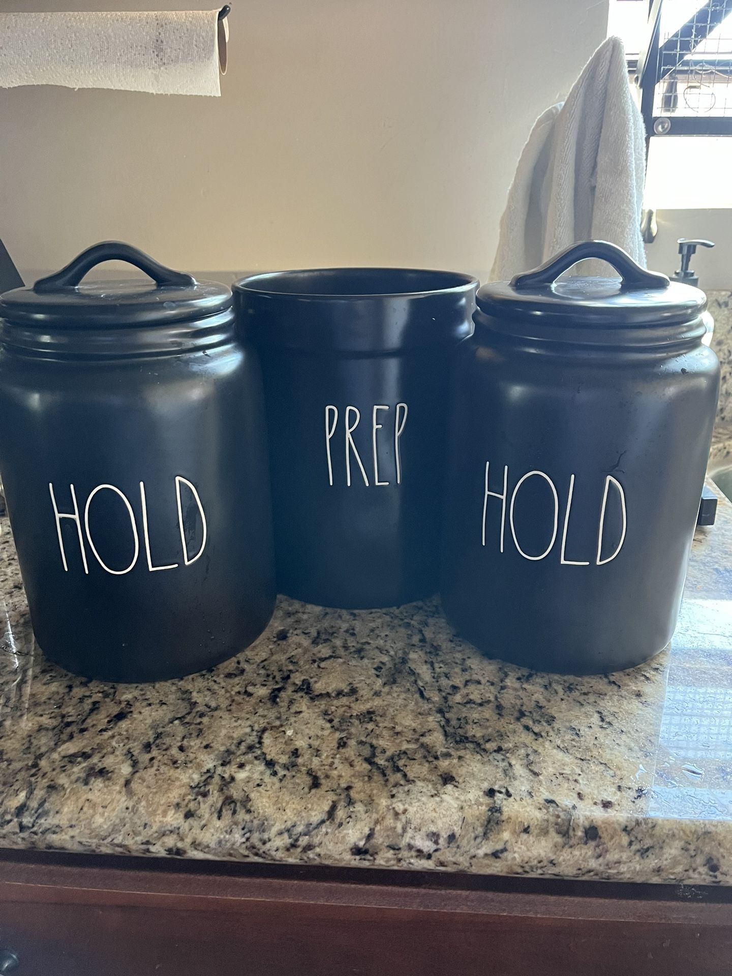 Used but great condition Rae Dunn 2 hold canisters 1 prep Black No chips