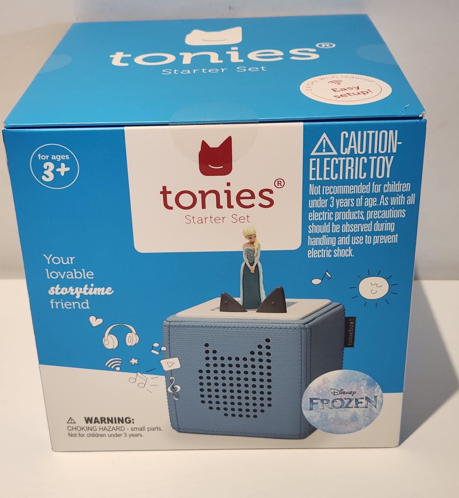 Brand new/unopened Made by parents, for parents. The Toniebox is an imagination-building, screen-free, educational, digital listening experience speaker that plays stories, songs, and much more. Designed to foster imagination, activity, and independent play for children ages three and up, it's everything a young explorer's growing mind needs! One little box. Countless Big Adventures. The Toniebox comes to life when paired with our whimsical collection of Tonies, hand-painted characters with hours of stories to tell, worlds to explore, and songs to sing. Included in the Starter Set is a Toniebox, Frozen Elsa Tonie with fun stories and songs, charging station, and instruction manual. A wide variety of Content Tonies are sold separately, start your collection today!