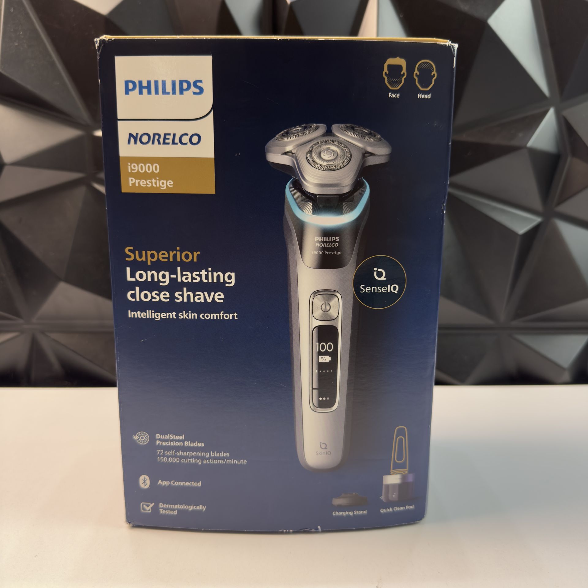 Philips Norelco Shaver i9000 Prestige, Wet & Dry Electric Shaver, Dark Slate Nova, SenseIQ Technology, Triple Lift & Cut System, 360 Rotating Dual SteelPrecision Blades, Charging Stand, XP9204/85